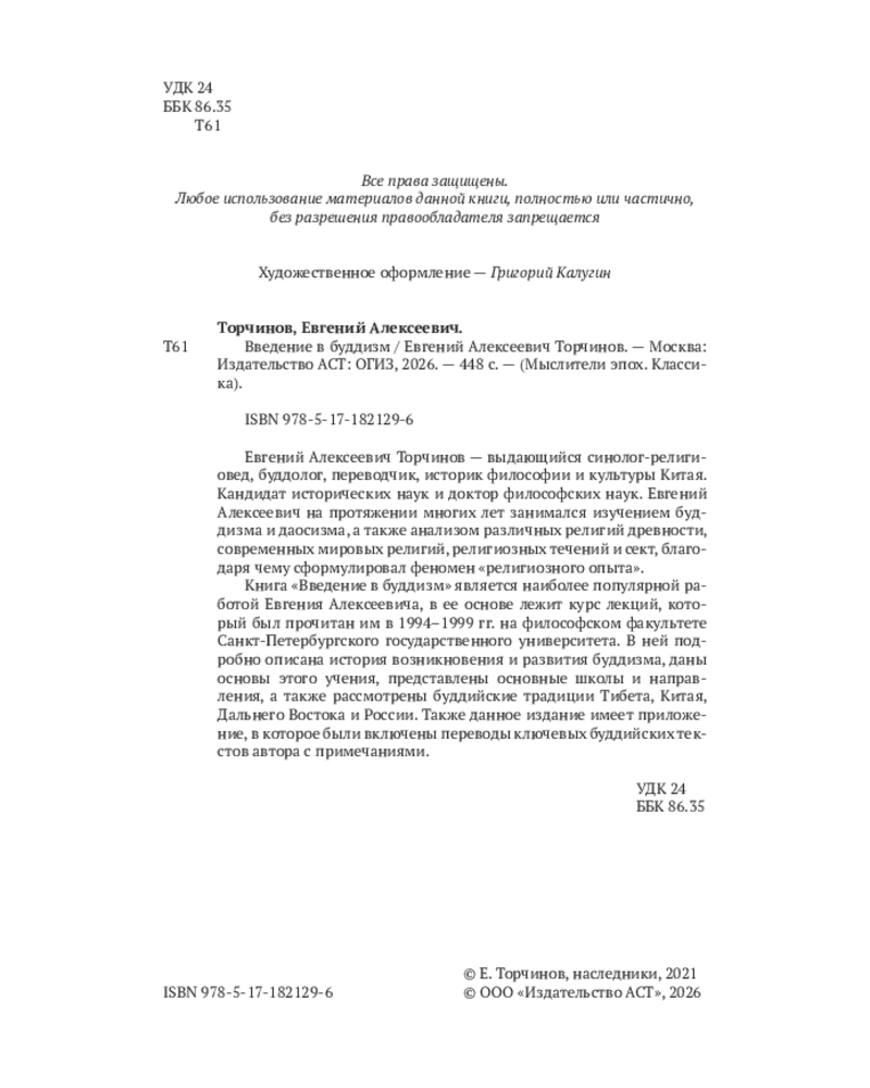 💳 Оплатить за товар можно при получении 🇰🇿 Есть бесплатная доставка по Казахстану от 1 дня 🎁 Копите бонусы с каждой покупки Серия: Мыслители эпох. Классика Евгений Алексеевич Торчинов — выдающийся синолог-религиовед, буддолог, переводчик, историк философии и культуры Китая. Кандидат исторических наук и доктор философских наук. Евгений Алексеевич на протяжении многих лет занимался изучением буддизма и даосизма, а также анализом различных религий древности, современных мировых религий, религиозных течений и сект, благодаря чему сформулировал феномен «религиозного опыта». |