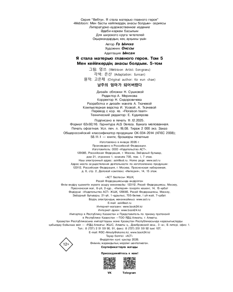 💳 Оплатить за товар можно при получении 🇰🇿 Есть бесплатная доставка по Казахстану от 1 дня 🎁 Копите бонусы с каждой покупки Серия: Вебтун. Я стала матерью главного героя Михаил уезжает, а Аиша продолжает разбираться в себе, пока Хадес Лувмонт активно готовится к свадьбе. Героиня налаживает отношения с маленьким Авелем. Сможет ли Аиша переписать ход истории и спасти Хадеса? И какая сила в ней заключена на самом деле? Встречайте продолжение первой в мире печатной версии вебтуна «Я стала матерью главного героя»! |