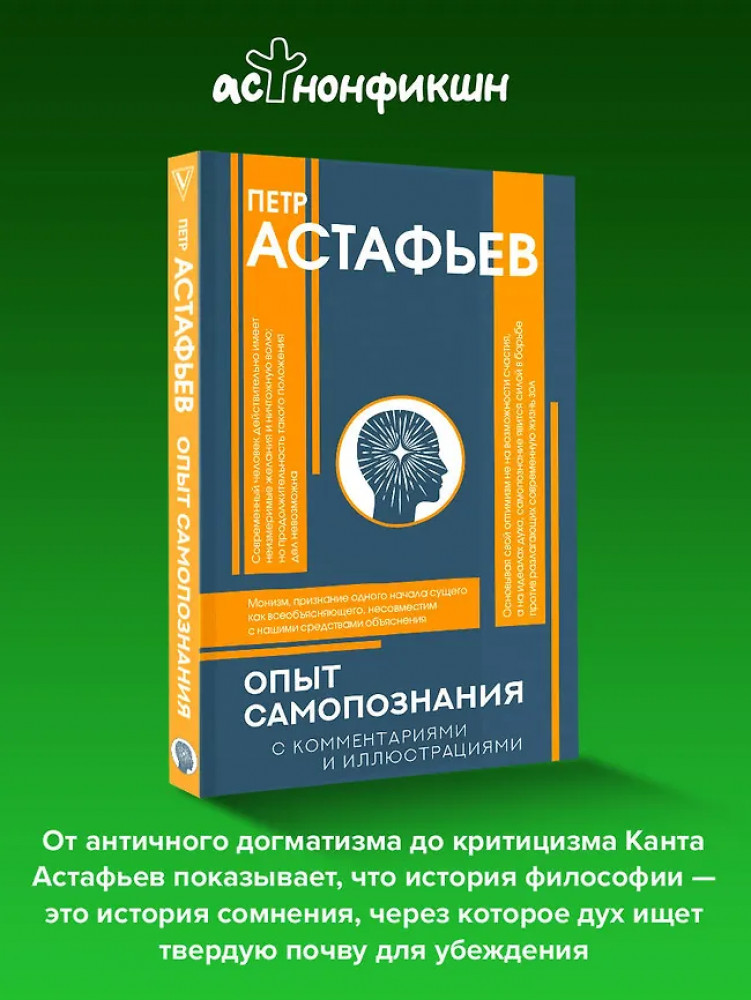 💳 Оплатить за товар можно при получении 🇰🇿 Есть бесплатная доставка по Казахстану от 1 дня 🎁 Копите бонусы с каждой покупки Серия: Популярная философия с иллюстрациями «Опыт самопознания» Петра Астафьева — философское исследование, выросшее из его лекции «Монизм и дуализм», прочитанной в 1872 году в Демидовском лицее. От античного догматизма до критицизма Канта Астафьев показывает, что история философии — это история сомнения, через которое дух ищет твердую почву для убеждения. Переосмысливая традицию от Сократа до Гегеля, он утверждает: подлинное познание возможно лишь через самопознание, через постижение нравственных оснований человеческого сознания. В этой книге философия предстает как путь внутренней свободы, не зависящий от внешнего авторитета, но основанный на внутренней необходимости мысли и совести. |