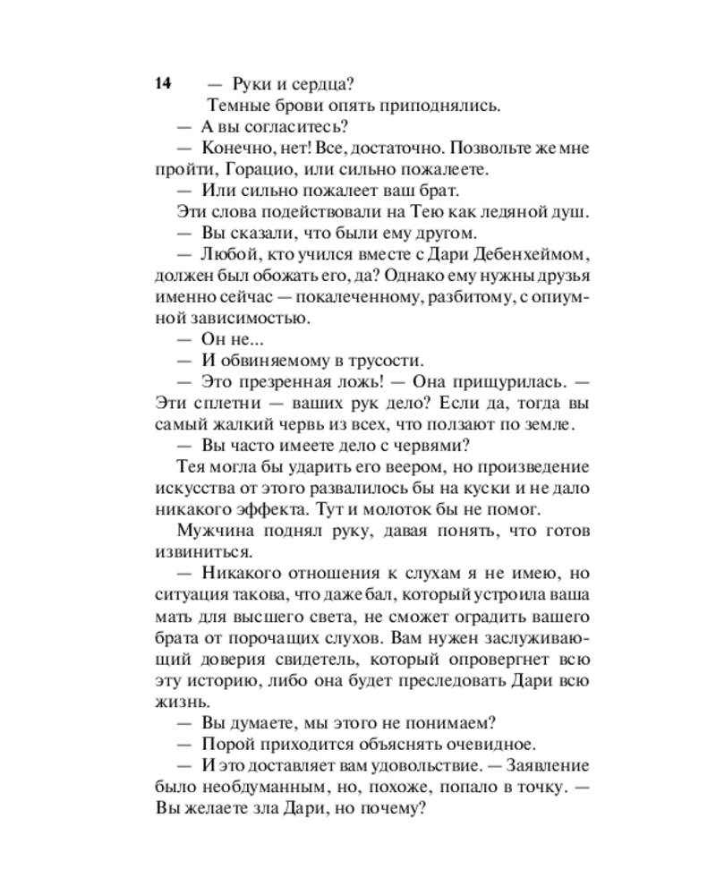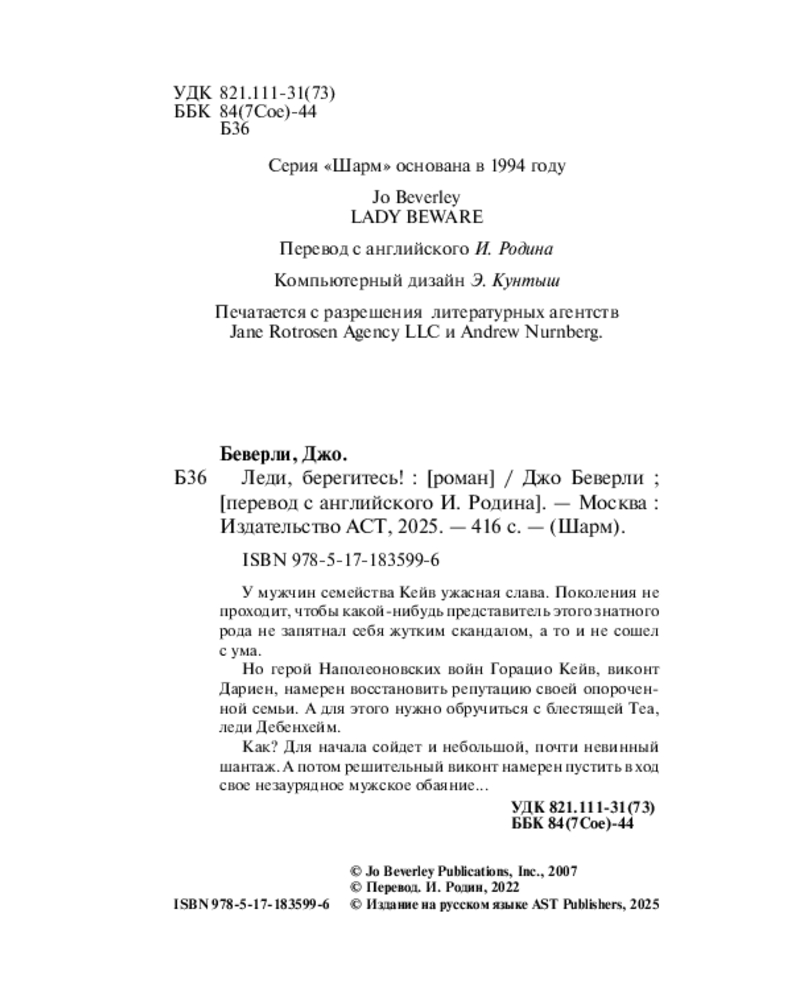 💳 Оплатить за товар можно при получении 🇰🇿 Есть бесплатная доставка по Казахстану от 1 дня 🎁 Копите бонусы с каждой покупки Серия: Шарм(мини)! У мужчин семейства Кейв — ужасная слава. Поколения не проходит, чтобы какой-нибудь представитель этого знатного рода не запятнал себя жутким скандалом, а то и не сошел с ума. Но герой Наполеоновских войн Горацио Кейв, виконт Дариен, намерен восстановить репутацию своей опороченной семьи. А для этого нужно обручиться с блестящей Теа, леди Дебенхейм. Как? Для начала сойдет и небольшой, почти невинный шантаж. А потом решительный виконт намерен пустить в ход свое незаурядное мужское обаяние... |