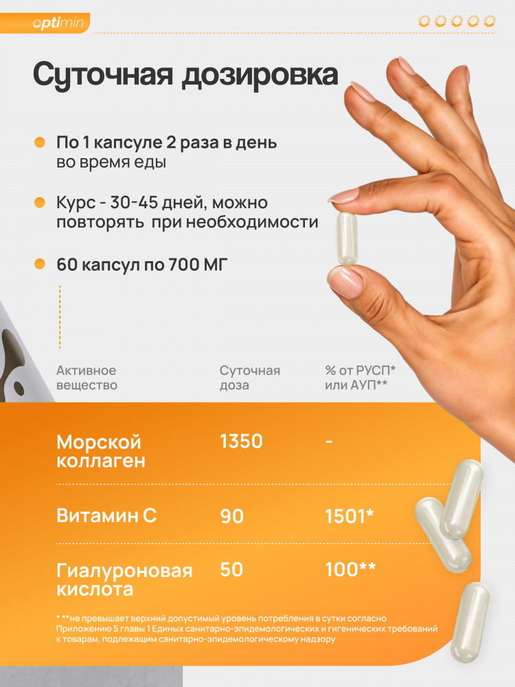 💳 Оплатить за товар можно при получении 🇰🇿 Есть бесплатная доставка по Казахстану от 1 дня 🎁 Копите бонусы с каждой покупки Морской коллаген представляет собой уникальный комплекс компонентов, способствующих улучшению состояния здоровья и внешнего вида: высококлассный гидролизованный морской коллаген, мощный антиоксидант витамин C и гиалуроновая кислота. Благодаря действию активных веществ, организм получает полноценную поддержку, повышающую жизненный тонус и придающую коже естественный сияющий вид. |