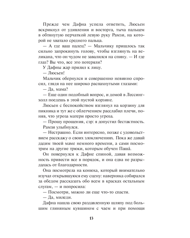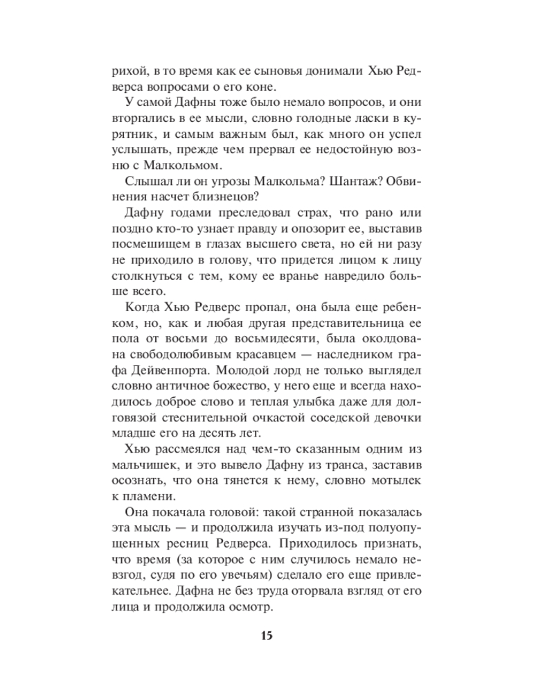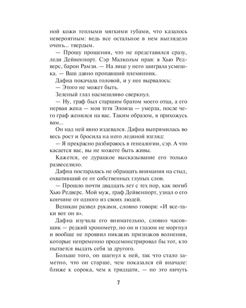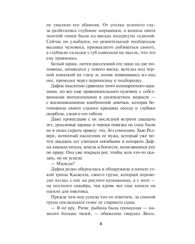 💳 Оплатить за товар можно при получении 🇰🇿 Есть бесплатная доставка по Казахстану от 1 дня 🎁 Копите бонусы с каждой покупки Серия: Очарование Размеренной жизни молодой графской вдовы Дафны Дейвенпорт приходит конец, когда в Англию возвращается считавшийся мертвым племянник ее мужа Хью Редверс — загорелый красавец с повязкой на глазу. Хью Редверс долгие годы сидел в плену, а затем промышлял пиратством в Средиземном море и даже не вспоминал о том, что именно он — единственный законный наследник своего покойного дяди. Вернувшись домой, Хью с удивлением понимает, что его неудержимо влечет к «тетушке» — умной, образованной и очаровательной Дафне. Вот только она хранит страшную тайну, способную уничтожить их отношения... |