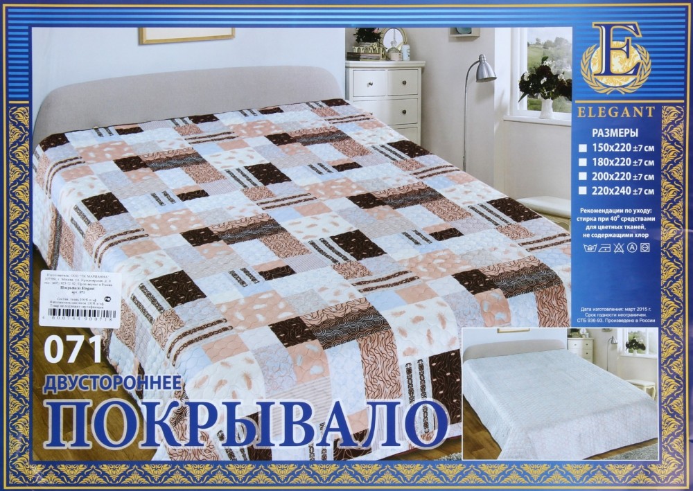 Верх покрывала выполнен из искусственного шелка с декоративной строчкой ультрастеп по всему покрывалу, низ покрывала - полликотон, подкладка холофайбер. Обратная сторона покрывала изготовлена из хлопка.