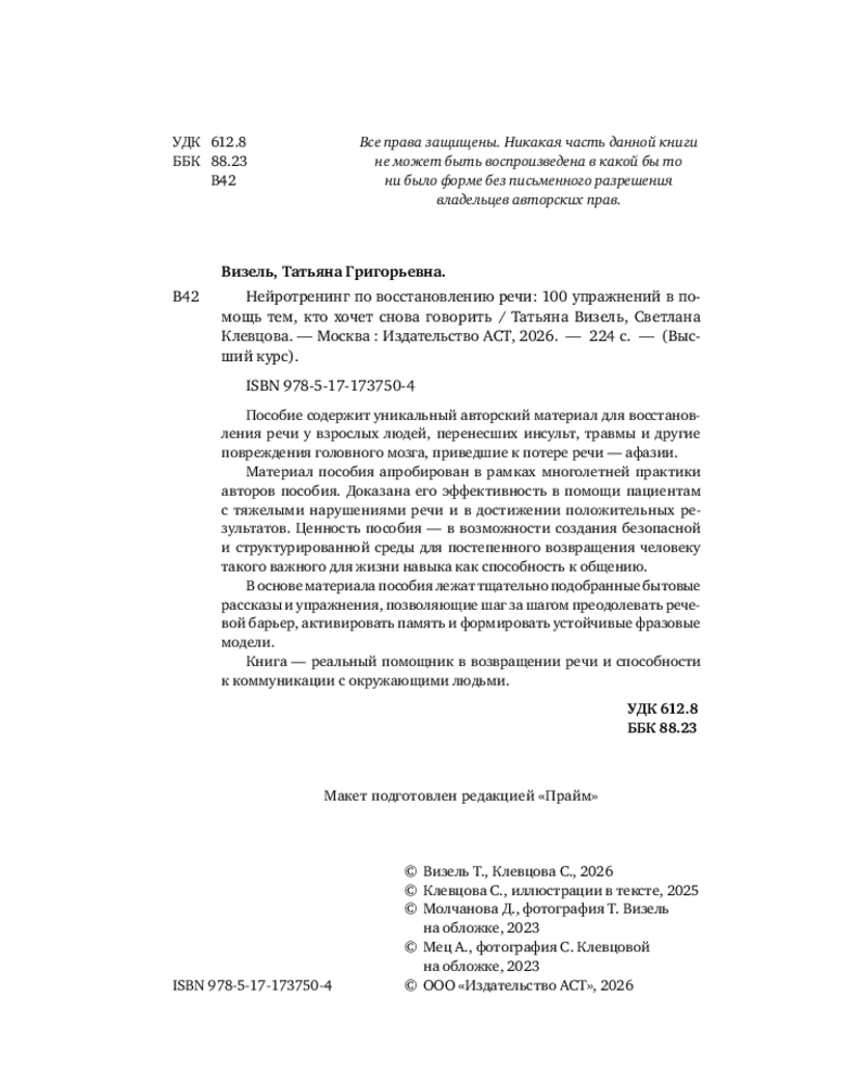 Нейротренинг по восстановлению речи. 100 упражнений в помощь тем, кто хочет снова говоритьСветлана Клевцова, Татьяна Григорьевна Визель +55