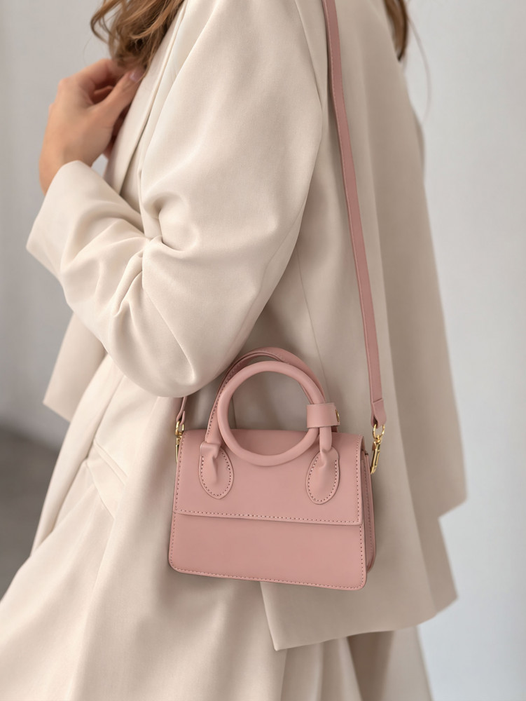 Женская сумочка на ремешке, мини-сумка кросс-боди из экокожи. Стильная женская мини-сумочка — элегантный аксессуар для повседневных образов и особых случаев. Нежный розовый оттенок и аккуратная форма делают модель универсальной и легко сочетаемой с деловым, городским и романтичным стилем. Такая сумка отлично подойдет для прогулок, встреч, свиданий и мероприятий. Сумка выполнена из качественной экокожи, которая приятна на ощупь, хорошо держит форму и устойчива к ежедневному использованию. Аккуратная прошивка, минималистичный дизайн и оригинальная круглая ручка придают аксессуару современный и стильный вид.