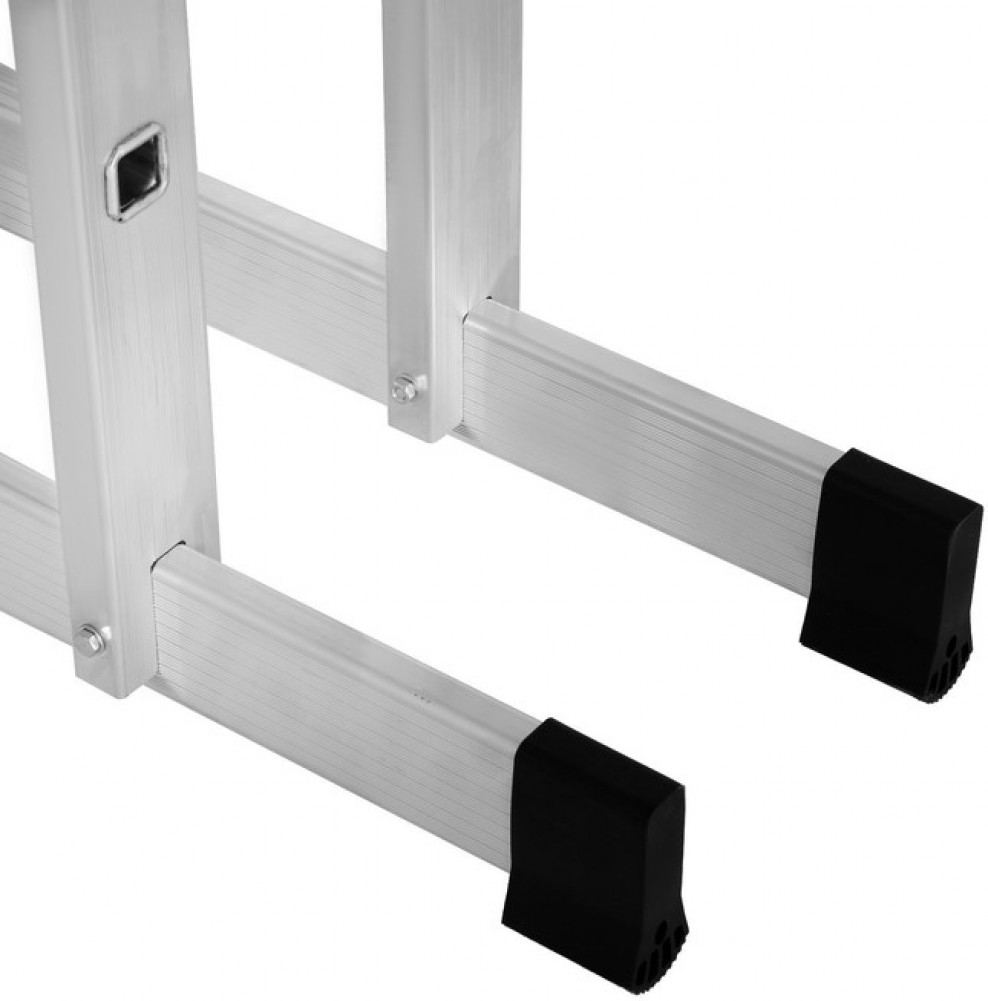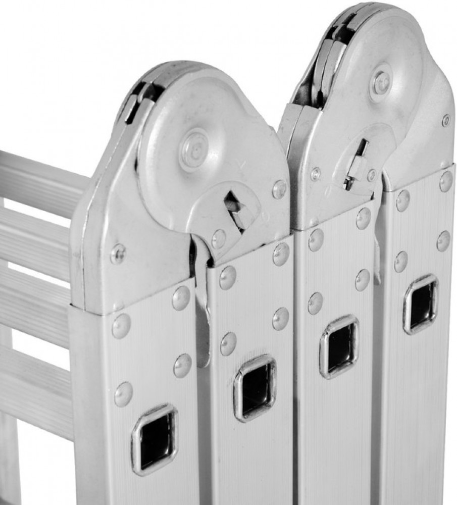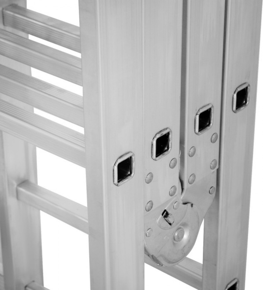 Тундра Лестница-трансформерВ данный момент этот товар отсутствует в продаже. Возможно, у нас найдется аналогичный или похожий товар здесь. Максимальная свобода для работы на высоте! Профессиональная алюминиевая лестница-трансформер 5×4×4×5 — это универсальная система из четырех секций с асимметричной конструкцией. Модель охватывает самый широкий спектр задач: от строительства и монтажа до обслуживания высоких помещений. Асимметричная конструкция секций: комбинация из двух секций по 5 ступеней и двух по 4 ступени создает дополнительные варианты сборки. Это дает преимущество при работе на сложном рельефе или при необходимости создать конструкцию с переменной высотой. Рабочая высота до 6.2 метра: Модель функционирует как приставная лестница для доступа к высоким потолкам, кровельным свесам или второму этажу. В форме стремянки конструкция сохраняет устойчивость при высотных работах. |