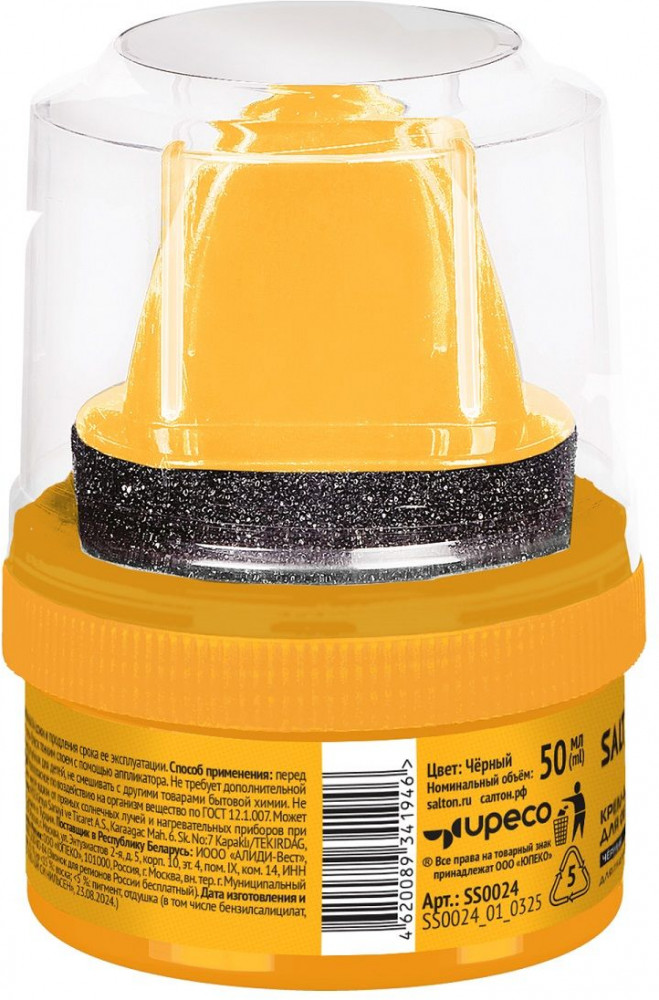 Salton Крем-блеск для обуви из гладкой кожи с аппликатором, цвет Черный