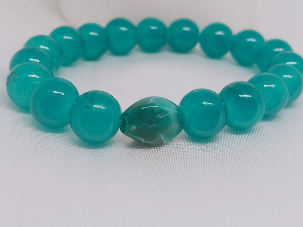 💳 Оплатить за товар можно при получении 🇰🇿 Есть бесплатная доставка по Казахстану от 1 дня 🎁 Копите бонусы с каждой покупки Яркий и легкий детский браслет из голубых стеклянных бусин — это модное украшение, собранное на прозрачной эластичной резинке. Браслет безопасен для кожи и надежно держится на запястье. |