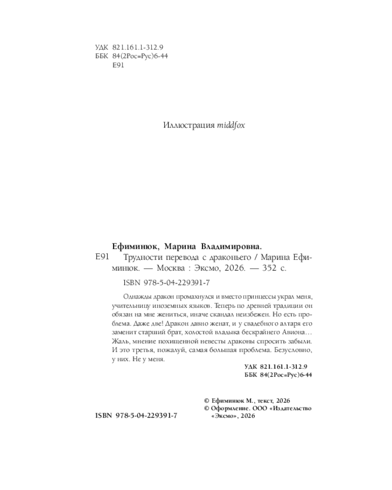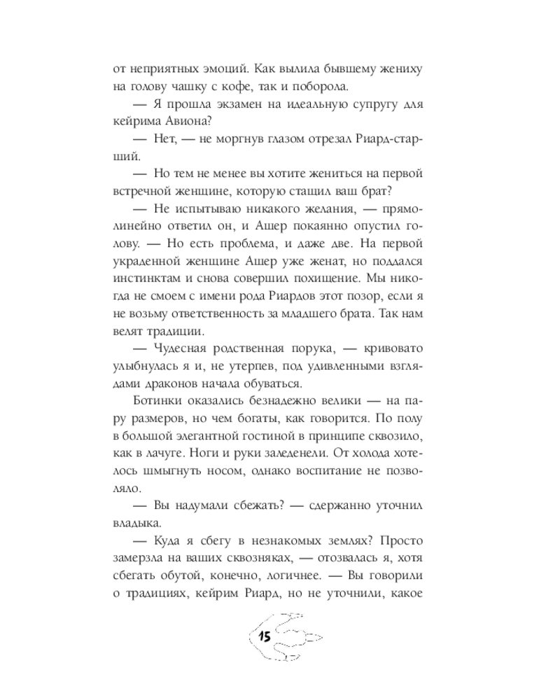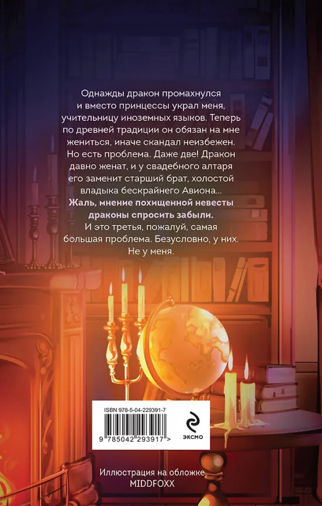 💳 Оплатить за товар можно при получении 🇰🇿 Есть бесплатная доставка по Казахстану от 1 дня 🎁 Копите бонусы с каждой покупки Серия: Не злите добрую колдунью! Однажды дракон промахнулся и вместо принцессы украл меня, учительницу иноземных языков. Теперь по древней традиции он обязан на мне жениться, иначе скандал неизбежен. Но есть проблема. Даже две! Дракон давно женат, и у свадебного алтаря его заменит старший брат, холостой владыка бескрайнего Авиона… Жаль, мнение похищенной невесты драконы спросить забыли. И это третья, пожалуй, самая большая проблема. Безусловно, у них. Не у меня. |