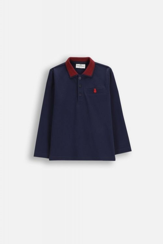 Откройте для себя элегантность и комфорт в одном изделии – темно-синей футболке с длинными рукавами , идеально подходящей для маленьких мальчиков. Изготовленная из мягкого, легкого хлопка, она приятна на ощупь и обеспечивает свободу движений . Уникальный воротник контрастного бордового цвета добавляет классического шарма, а декоративная вышивка на передней части подчеркивает ее неповторимый стиль.