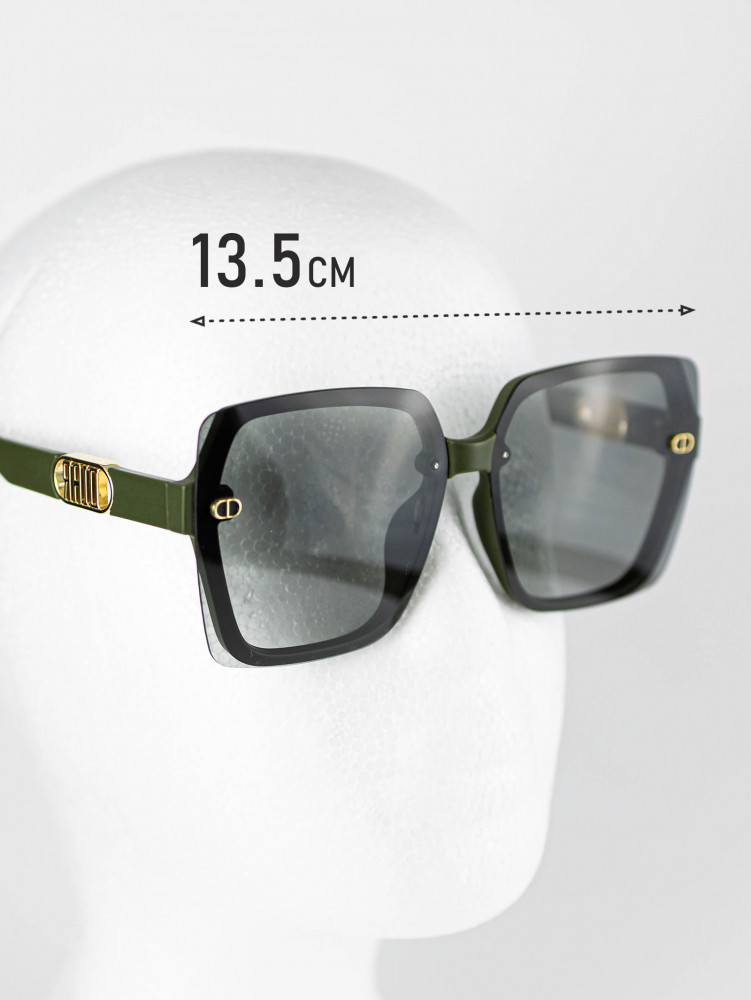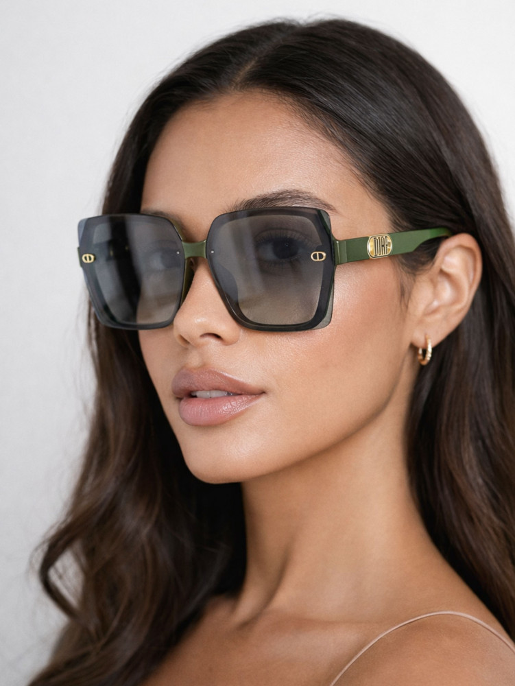 Стильные солнцезащитные очки в модной квадратной форме — эффектный аксессуар, который подчеркнет образ и защитит глаза от яркого солнца. Модель выполнена в трендовой комбинации: темные линзы и матовая оправа глубокого зеленого оттенка с элегантной золотистой фурнитурой. Такой дизайн выглядит дорого, современно и легко сочетается как с повседневными, так и с более элегантными образами.