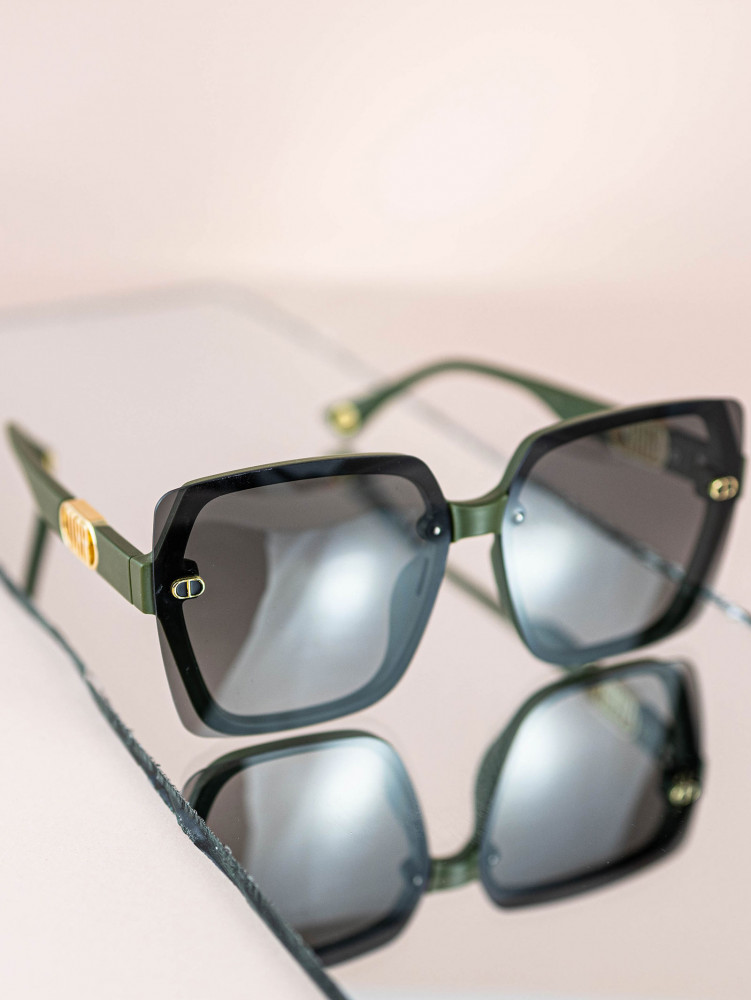 Солнцезащитные очки квадратной формы — стильная женская модель в зеленой оправе.