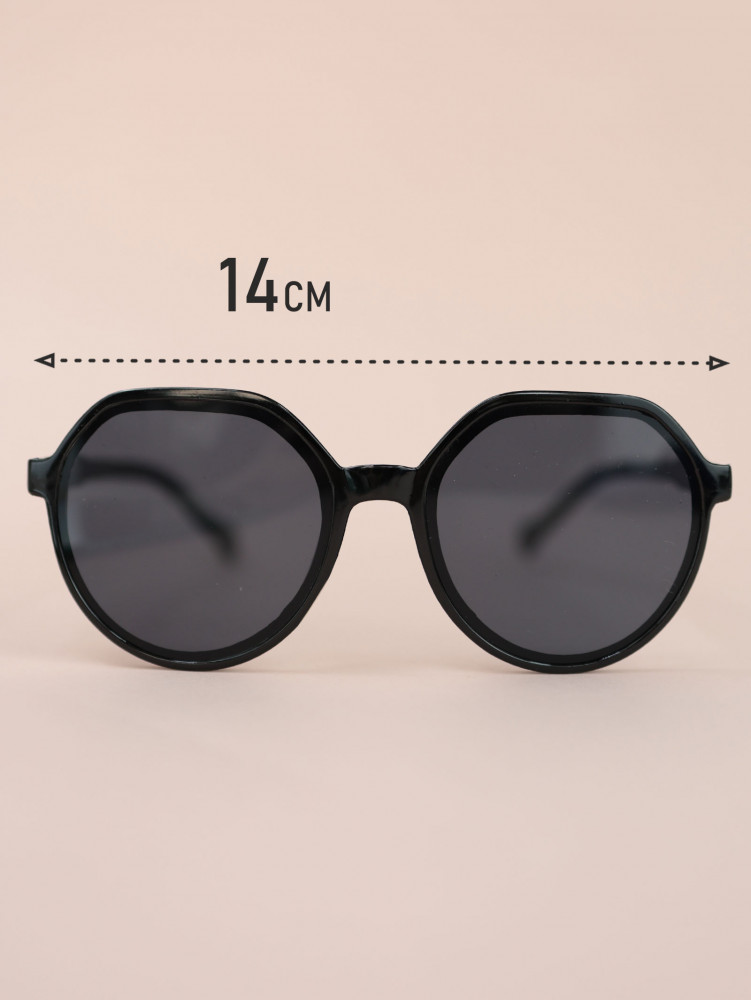 Ширина оправы составляет 14 см, что обеспечивает комфортную посадку и хорошую фиксацию на лице. Стильные черные солнцезащитные очки станут универсальным аксессуаром, который легко дополнит любой образ и будет актуален в любое время года.