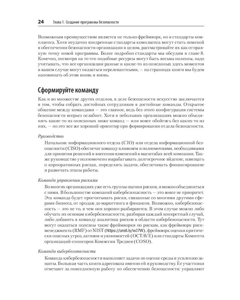 💳 Оплатить за товар можно при получении 🇰🇿 Есть бесплатная доставка по Казахстану от 1 дня 🎁 Копите бонусы с каждой покупки Серия: Бестселлеры O'Reilly Несмотря на то что рекордные утечки данных, резонансные взломы и атаки вымогателей происходят с пугающей частотой, многие компании не спешат выделить бюджет на информационную безопасность. Если ваша работа состоит в том, чтобы импровизировать, защищая активы работодателя, это прагматичное руководство обеспечит вас инструментами и идеями, которые позволят максимально усилить безопасность без особых затрат. В каждой главе книги приведены пошаговые рекомендации по решению задач, связанных с инцидентами и сбоями, комплаенсом, сетевой инфраструктурой, управлением паролями, анализом уязвимостей, тестированием на проникновение и другими направлениями ИБ. Сетевые инженеры, системные администраторы и специалисты по безопасности узнают, как создать и усовершенствовать программы кибербезопасности. |