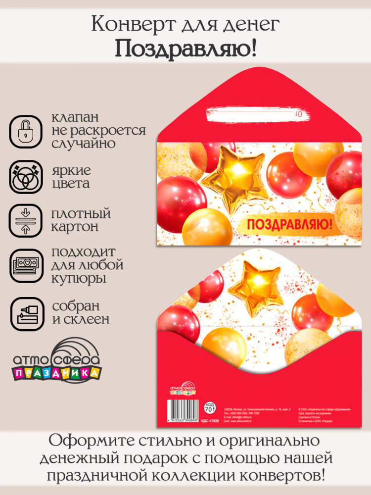Атмосфера праздника Конверт для денег на склейке. Поздравляю!+5