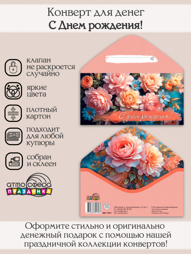 Атмосфера праздника Конверт для денег на склейке «С днем рождения!»+3