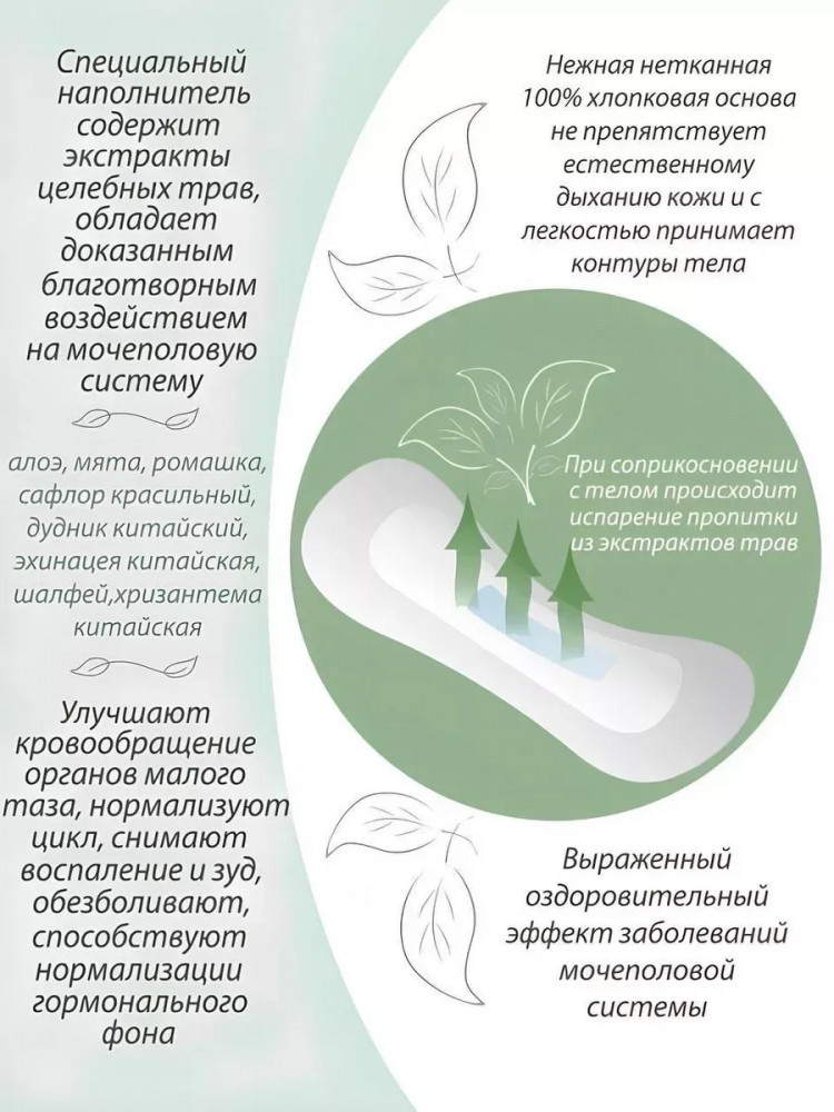 • Содержат женские травы, действуют как антисептик, противодействуя распространению бактерий, грибков.