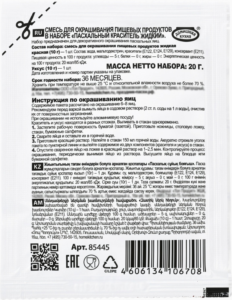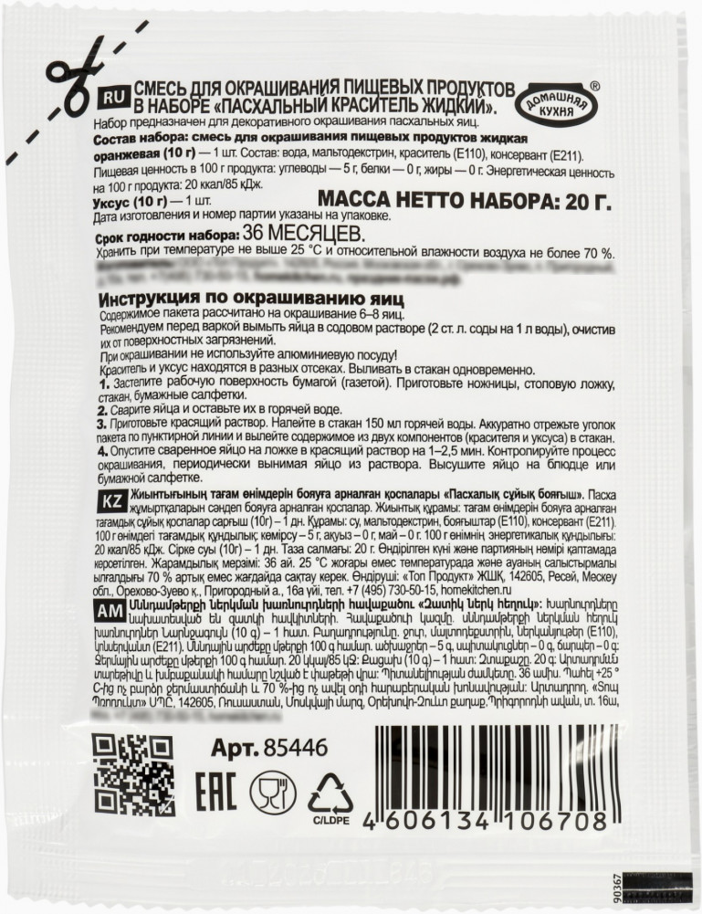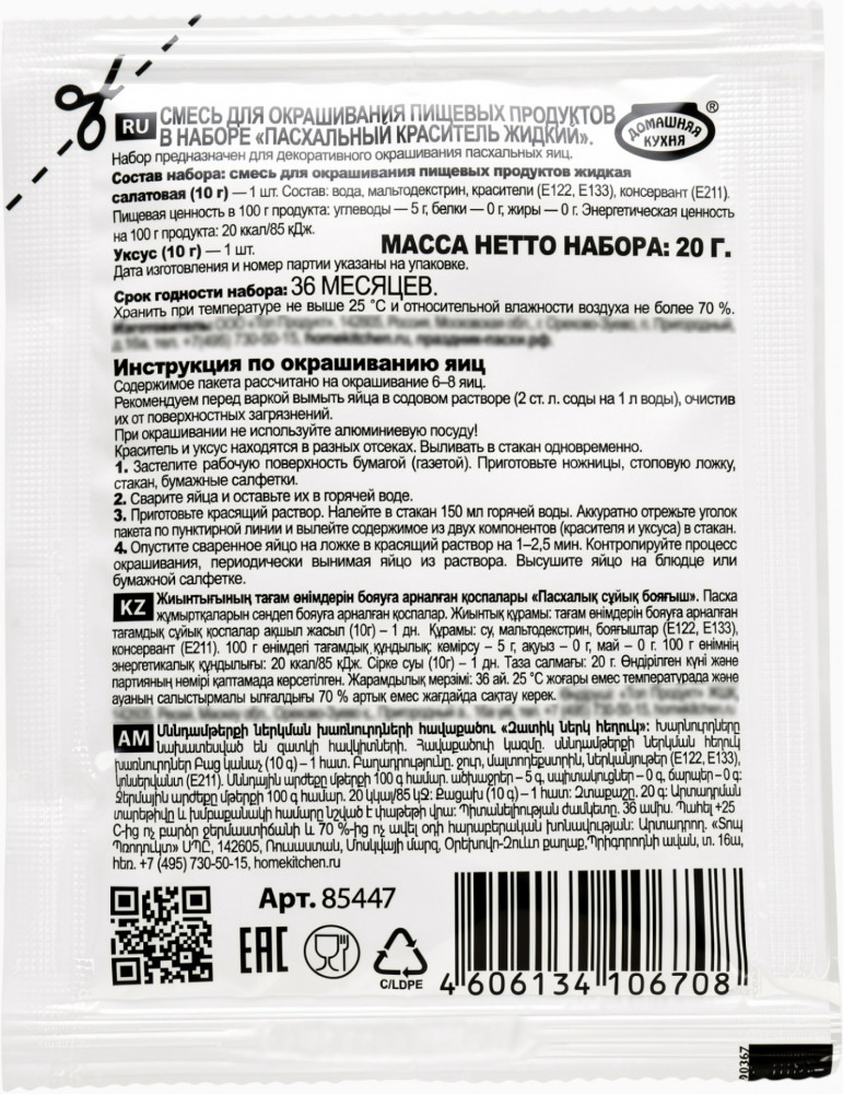 Домашняя кухня Пасхальный набор красителей на основе уксуса+6