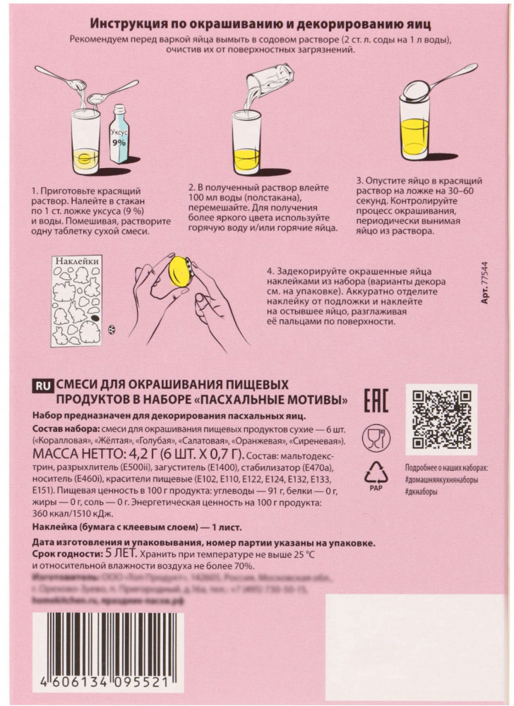 Домашняя кухня Набор для окрашивания и декорирования пасхальных яиц «Пасхальные мотивы»+9
