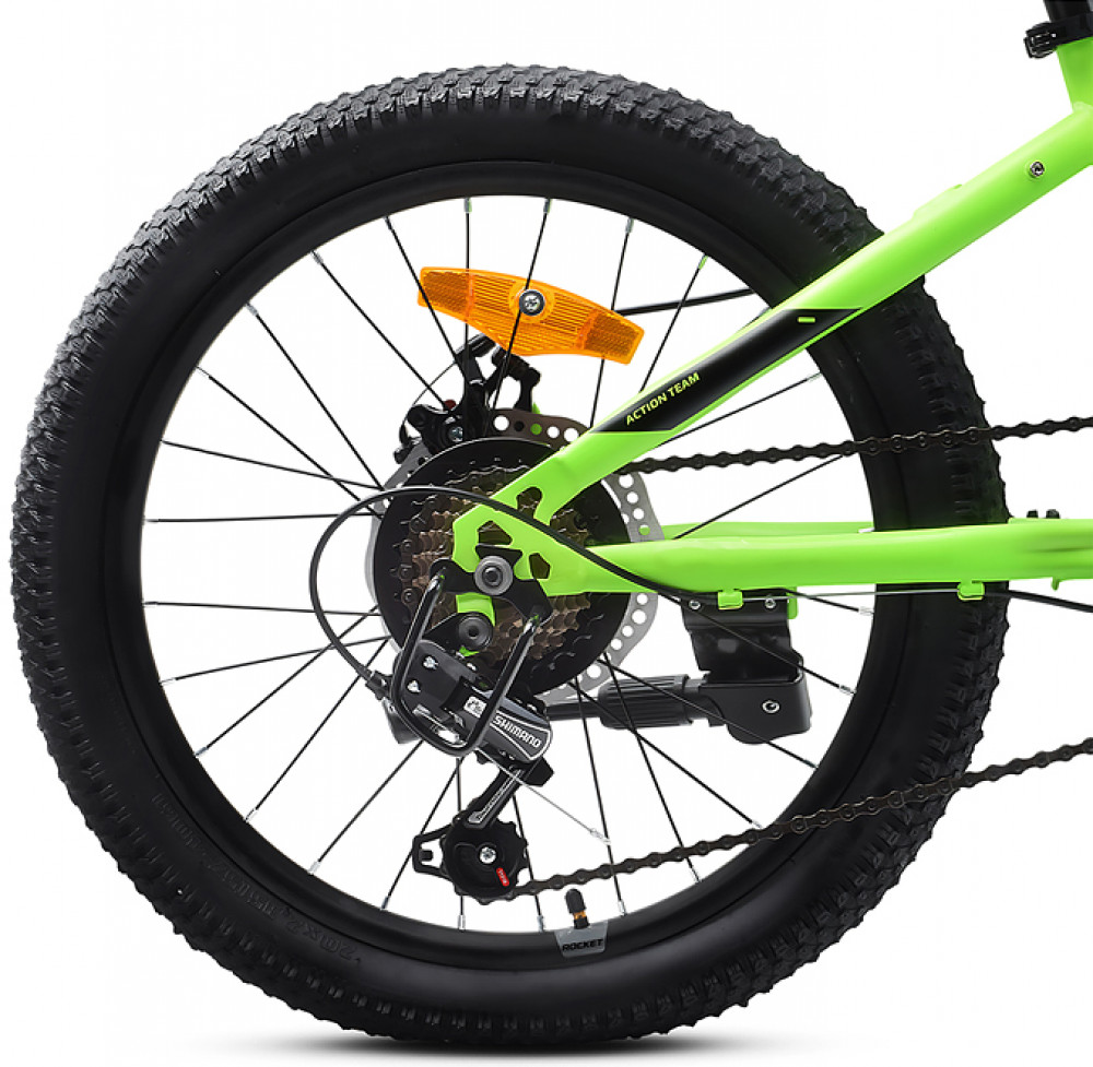 Размер рамы 11 дюймов. Материал рамы: сталь, внутренняя проводка тросов. Рекомендуемый рост: 120-135 см. Колёса 20×2.125" с двойными алюминиевыми ободами. Стальная амортизационная вилка с ходом 50 мм. Камеры с автониппелем AV. Ширина руля 560 мм. Рулевая колонка резьбовая 1-1/8". Шифтер: Microshift TS38-7. Дисковые механические тормоза с размерами роторов 160 мм. Передняя звезда на 36 зубов. Задний переключатель: Shimano RDTY-21. Количество скоростей: 7. Трещотка: SUPERWIN 764; 14-28T. Цепь: Taya TB-408. Грипсы: TD-190 TRP. Тип каретки: картридж - закрытые подшипники. Велосипед оснащен подножкой. Размеры велосипеда в собранном виде: 140×57×88 см. Вес велосипеда: 13.5 кг. Максимальная нагрузка: 70 кг. Высота от пола до руля: 88 см. Высота от пола до сиденья: 70-78 см.
