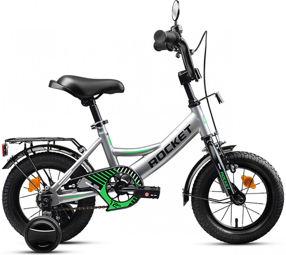 Яркий фирменный стиль ТМ Rocket не оставит равнодушным ни одного ребенка! Отлично держит дорогу за счет резиновых надувных колес, размером 12 дюймов. В комплекте имеются дополнительные учебные колёса. Сиденье из ПВХ, можно регулировать по высоте (48-58 см). Металлические брызговики защитят маленького велосипедиста от загрязнений. Велосипед оснащен передним клещевым и задним ножным тормозами. Ширина руля: 45 см, оснащен противоскользящими прорезиненными ручками. Велосипед подходит для детей 3-4 лет, ростом от 100 до 115 см. Габаритные размеры велосипеда: 90х 50×65 см. В комплекте звонок на руль. Металлический багажник. Максимальная нагрузка: 50 кг. Вес велосипеда без упаковки: 8 кг. Рама: сталь. Вынос: резьбовой. Вилка: жесткая стальная. Покрышки: 2.125.