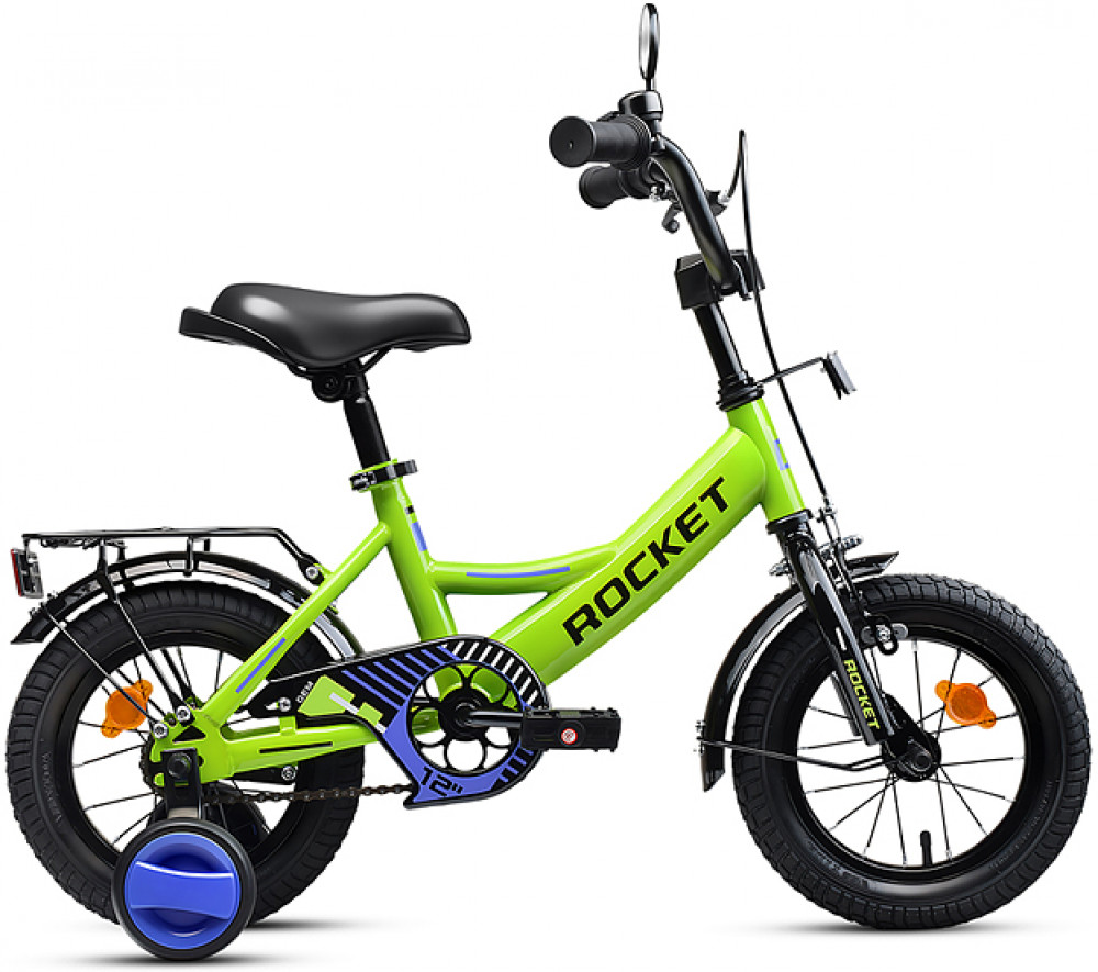 Яркий фирменный стиль ТМ Rocket не оставит равнодушным ни одного ребенка! Отлично держит дорогу за счет резиновых надувных колес, размером 12 дюймов. В комплекте имеются дополнительные учебные колёса. Сиденье из ПВХ, можно регулировать по высоте (48-58 см). Металлические брызговики защитят маленького велосипедиста от загрязнений. Велосипед оснащен передним клещевым и задним ножным тормозами. Ширина руля: 45 см, оснащен противоскользящими прорезиненными ручками. Велосипед подходит для детей 3-4 лет, ростом от 100 до 115 см. Габаритные размеры велосипеда: 90х 50×65 см. В комплекте звонок на руль. Металлический багажник. Максимальная нагрузка: 50 кг. Вес велосипеда без упаковки: 8 кг. Рама: сталь. Вынос: резьбовой. Вилка: жесткая стальная. Покрышки: 2.125.