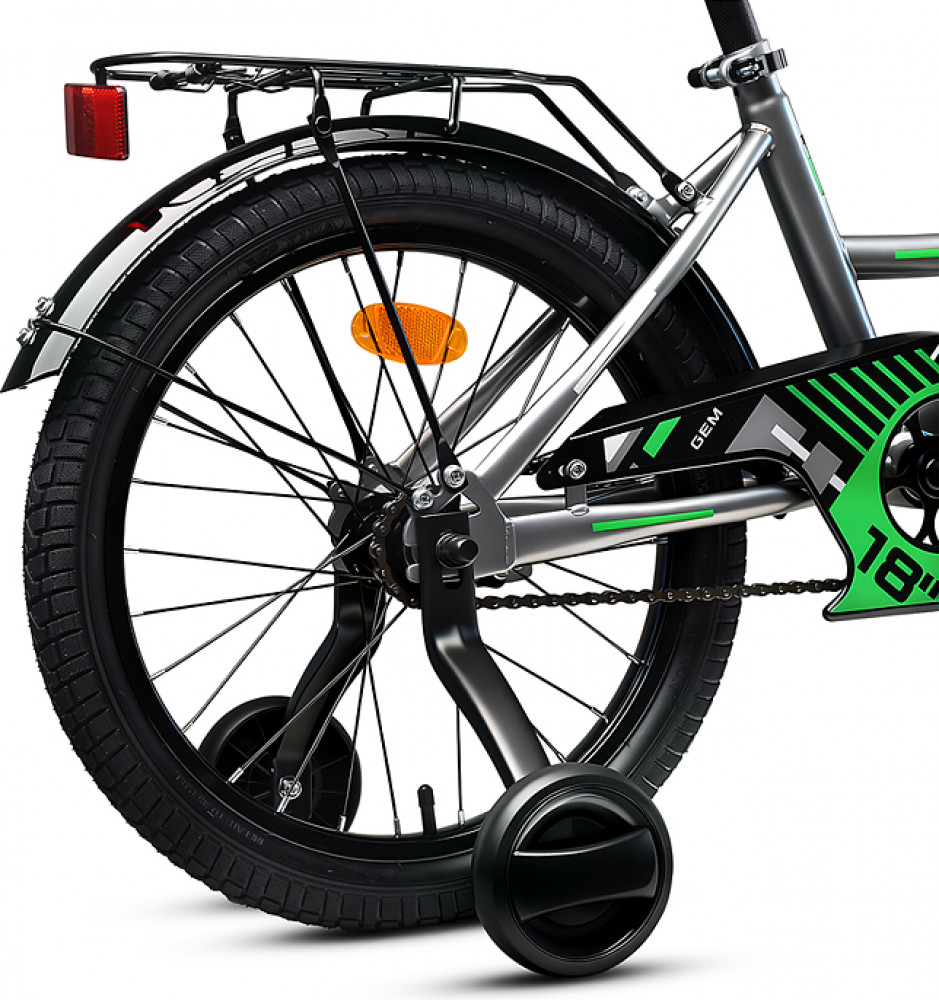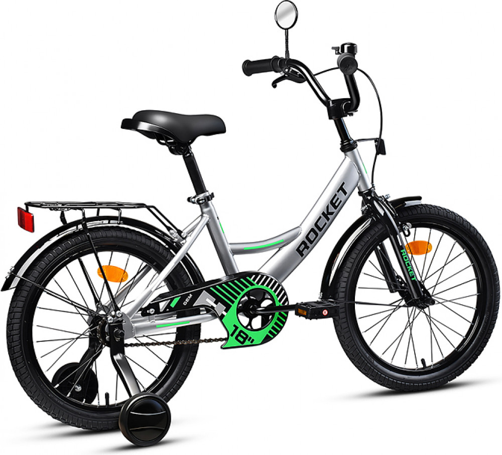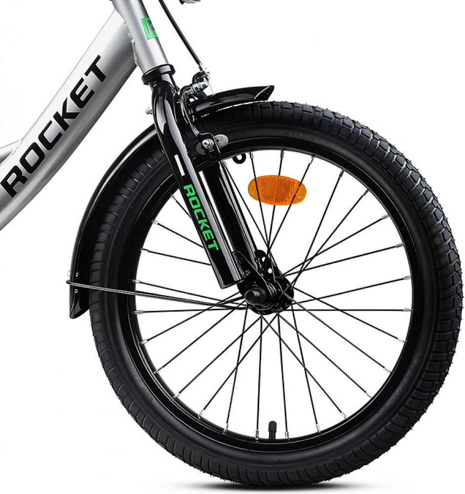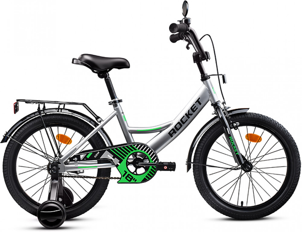 Яркий фирменный стиль ТМ Rocket не оставит равнодушным ни одного ребенка! Отлично держит дорогу за счет резиновых надувных колес, размером 18 дюймов. В комплекте имеются дополнительные учебные колёса. Сиденье из ПВХ, можно регулировать по высоте (59-68 см). Металлические брызговики защитят маленького велосипедиста от загрязнений. Велосипед оснащен передним клещевым и задним ножным тормозами. Ширина руля: 50 см, оснащен противоскользящими прорезиненными ручками. Велосипед подходит для детей 6-8 лет, ростом от 115 до 130 см. Габаритные размеры велосипеда: 125×54×83 см. В комплекте звонок на руль. Металлический багажник. Максимальная нагрузка: 50 кг. Вес велосипеда без упаковки: 10 кг. Рама: сталь. Вынос: резьбовой. Вилка: жесткая стальная. Покрышки: 2.125.