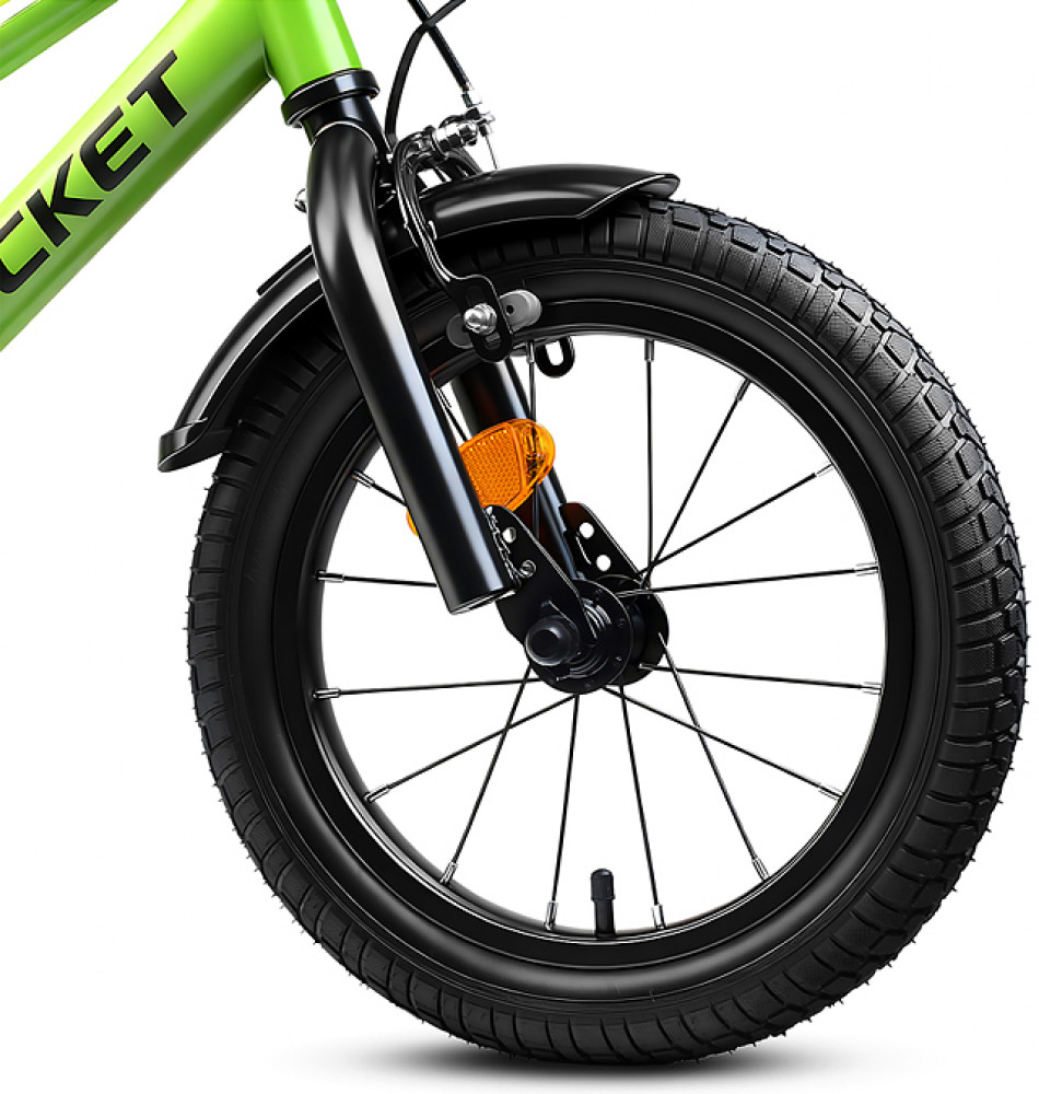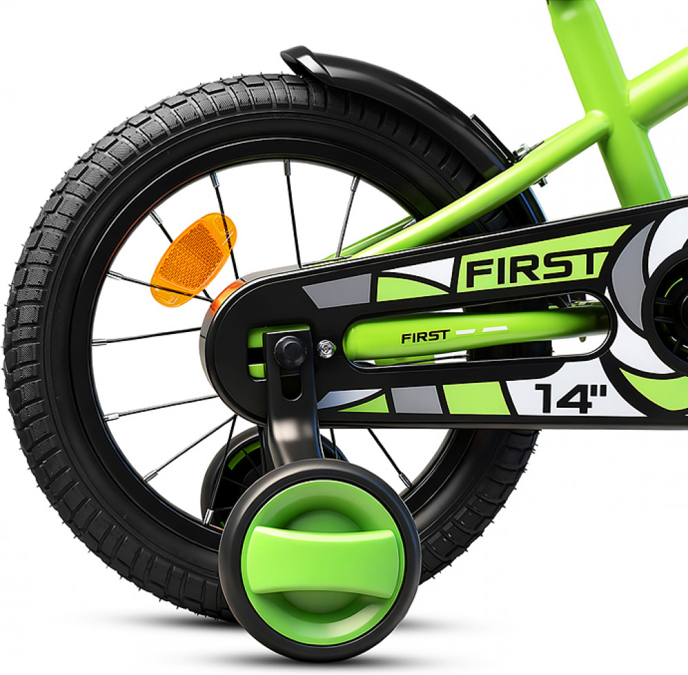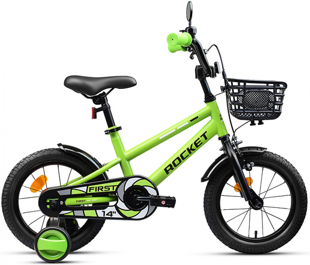 Отлично держит дорогу за счет резиновых надувных колес, размером 14 дюймов. В комплекте имеются дополнительные учебные колёса (прорезиненные) и звонок на руль. Расстояние между учебными колёсами: 42 см. Сиденье из ПВХ можно регулировать по высоте (50-62 см). Пластиковые брызговики защитят маленького велосипедиста от загрязнений. Велосипед оснащен передним клещевым и задним ножным тормозами. Ширина руля: 50 см, оснащен противоскользящими прорезиненными ручками. Велосипед подходит для детей 3-5 лет, ростом от 105 до 120 см. Габаритные размеры велосипеда: 99×50×75 см. Максимальная нагрузка: 40 кг. Вес велосипеда без упаковки: 8.4 кг. Съёмная пластиковая корзина. В комплекте звонок на руль. Рама: сталь. Вынос: резьбовой. Вилка: жесткая стальная. Покрышки: 2.125.