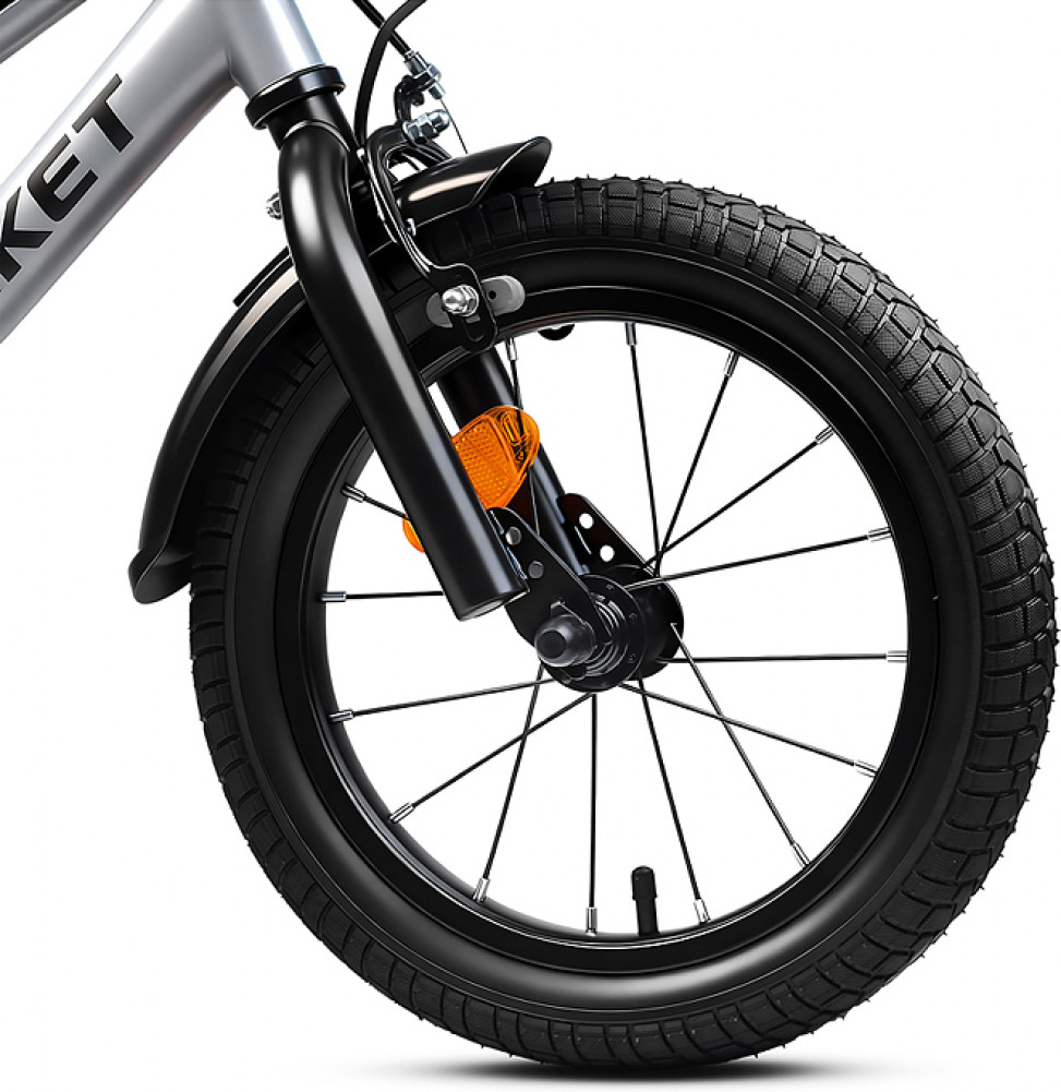 Отлично держит дорогу за счет резиновых надувных колес, размером 14 дюймов. В комплекте имеются дополнительные учебные колёса (прорезиненные) и звонок на руль. Расстояние между учебными колёсами: 42 см. Сиденье из ПВХ можно регулировать по высоте (50-62 см). Пластиковые брызговики защитят маленького велосипедиста от загрязнений. Велосипед оснащен передним клещевым и задним ножным тормозами. Ширина руля: 50 см, оснащен противоскользящими прорезиненными ручками. Велосипед подходит для детей 3-5 лет, ростом от 105 до 120 см. Габаритные размеры велосипеда: 99×50×75 см. Максимальная нагрузка: 40 кг. Вес велосипеда без упаковки: 8.4 кг. Съёмная пластиковая корзина. В комплекте звонок на руль. Рама: сталь. Вынос: резьбовой. Вилка: жесткая стальная. Покрышки: 2.125.