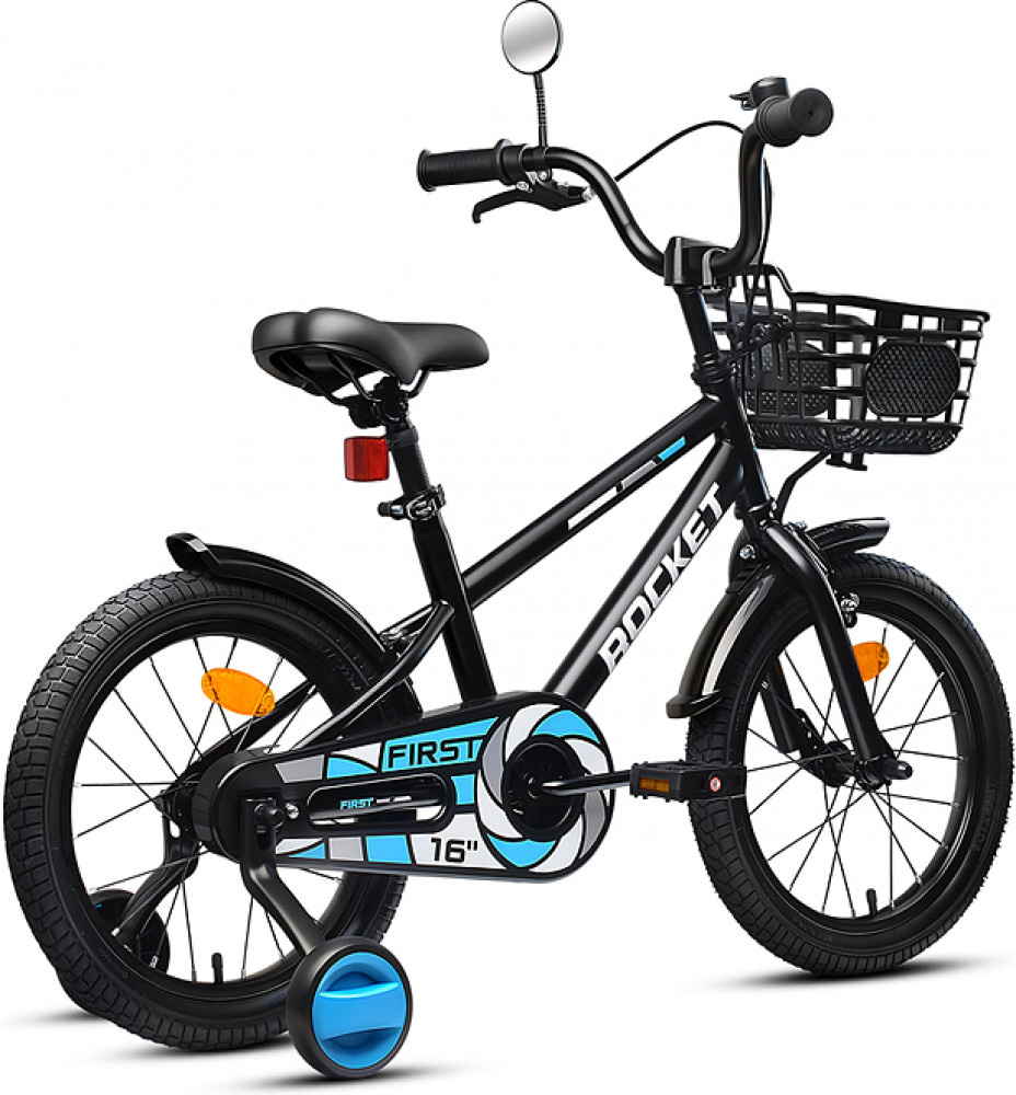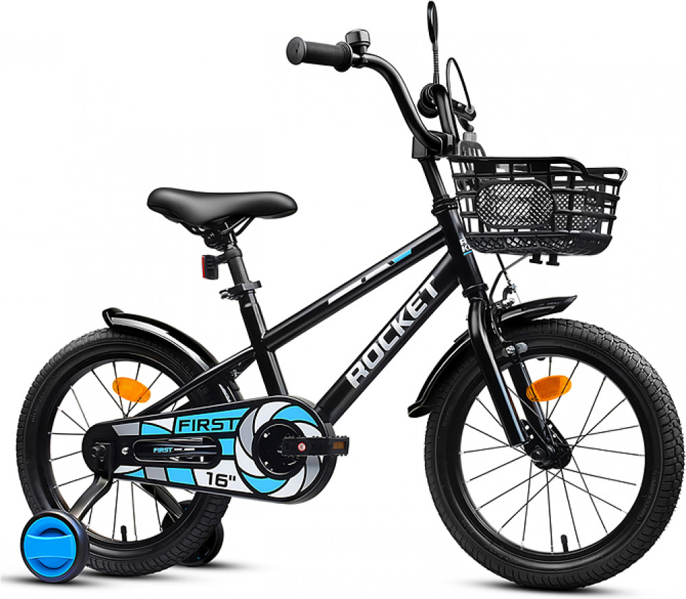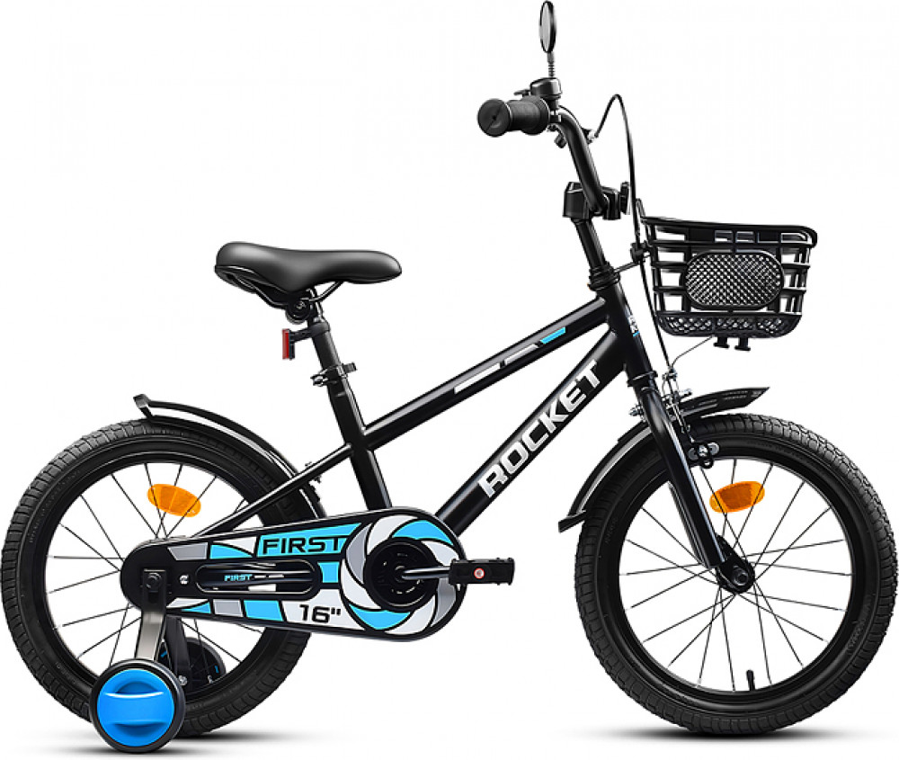 Яркий фирменный стиль ТМ Rocket не оставит равнодушным ни одного ребенка! Отлично держит дорогу за счет резиновых надувных колес, размером 16 дюймов. В комплекте имеются дополнительные учебные колёса. Расстояние между учебными колёсами: 44 см. Сиденье из ПВХ, можно регулировать по высоте (56-64 см). Пластиковые брызговики защитят маленького велосипедиста от загрязнений. Велосипед оснащен передним клещевым и задним ножным тормозами. Ширина руля: 55 см, оснащен противоскользящими прорезиненными ручками. Велосипед подходит для детей 5-7 лет, ростом от 110 до 125 см. Габаритные размеры велосипеда: 112×55×75 см. Съёмная пластиковая корзина. В комплекте звонок на руль. Максимальная нагрузка: 50 кг. Вес велосипеда без упаковки: 8.2 кг. Рама: сталь. Вынос: резьбовой. Вилка: жесткая стальная. Покрышки: 2.125.