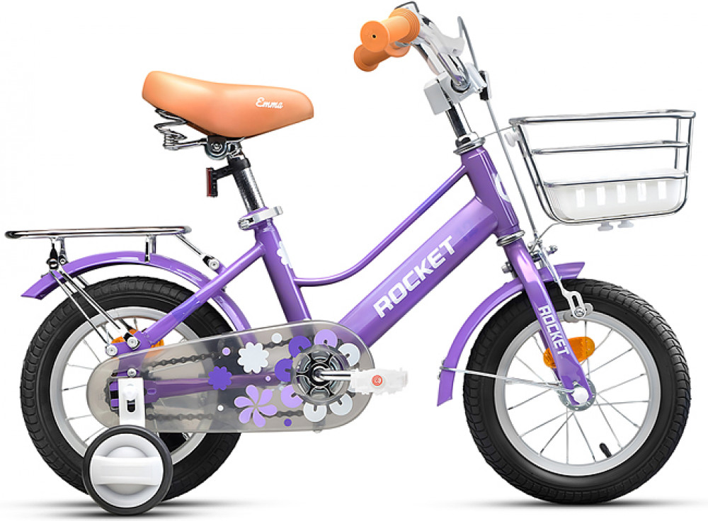 Яркий фирменный стиль ТМ Rocket не оставит равнодушным ни одного ребенка! Отлично держит дорогу за счет резиновых надувных колес, размером 12 дюймов. В комплекте имеются дополнительные учебные колёса. Ширина учебных колес: 38 см. Сиденье из ПВХ, можно регулировать по высоте (52-58). Металлические брызговики защитят маленького велосипедиста от загрязнений. Велосипед оснащен передним клещевым и задним ножным тормозами. Ширина руля: 52 см, оснащен противоскользящими прорезиненными ручками. Высота руля: 60-65 см. Велосипед подходит для детей 3-4 лет, ростом от 100 до 115 см. Габаритные размеры велосипеда: 86×52×65 см. В комплекте звонок на руль. Съёмная металлическая корзина. Максимальная нагрузка: 40 кг. Вес велосипеда без упаковки: 7 кг. Рама: сталь. Вынос: резьбовой. Вилка: жесткая стальная. Покрышки: 2.125.