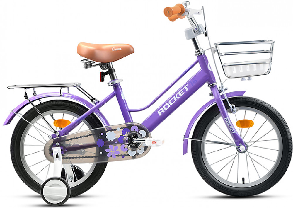 Яркий фирменный стиль ТМ Rocket не оставит равнодушным ни одного ребенка! Отлично держит дорогу за счет резиновых надувных колес, размером 16 дюймов. В комплекте имеются дополнительные учебные колёса. Сиденье из ПВХ, можно регулировать по высоте (55-60 см). Металлические брызговики защитят маленького велосипедиста от загрязнений. Велосипед оснащен передним клещевым и задним ножным тормозами. Ширина руля: 51 см, оснащен противоскользящими прорезиненными ручками. Высота руля: 70 см. Велосипед подходит для детей 3-5 лет, ростом от 110 до 125 см. Габаритные размеры велосипеда: 100×51×70 см. В комплекте звонок на руль. Съёмная металлическая корзина. Максимальная нагрузка: 50 кг. Вес велосипеда без упаковки: 8.4 кг. Рама: сталь. Вынос: резьбовой. Вилка: жесткая стальная. Покрышки: 2.125.