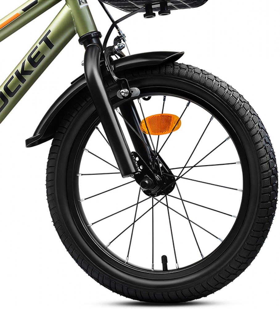Яркий фирменный стиль ТМ Rocket не оставит равнодушным ни одного ребенка! Отлично держит дорогу за счет резиновых надувных колес, размером 16 дюймов. В комплекте имеются дополнительные учебные колёса. Расстояние между учебными колёсами: 44 см. Сиденье из ПВХ, можно регулировать по высоте (56-64 см). Пластиковые брызговики защитят маленького велосипедиста от загрязнений. Велосипед оснащен передним клещевым и задним ножным тормозами. Ширина руля: 55 см, оснащен противоскользящими прорезиненными ручками. Велосипед подходит для детей 5-7 лет, ростом от 110 до 125 см. Габаритные размеры велосипеда: 112×55×75 см. Съёмная пластиковая корзина. В комплекте звонок на руль. Максимальная нагрузка: 50 кг. Вес велосипеда без упаковки: 8.2 кг. Рама: сталь. Вынос: резьбовой. Вилка: жесткая стальная. Покрышки: 2.125.
