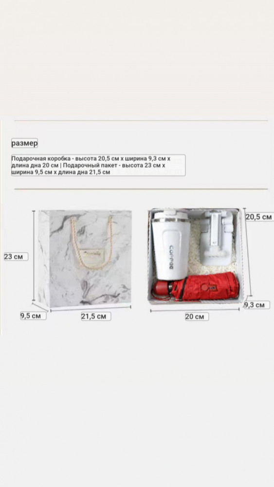 💳 Оплатить за товар можно при получении 🇰🇿 Есть бесплатная доставка по Казахстану от 1 дня 🎁 Копите бонусы с каждой покупки Стильный подарочный набор в белой коробке — практичный и уютный презент на каждый день. В комплекте: термостакан для горячих напитков, компактный складной зонт от солнца, и удобный держатель для смартфона. Идеально подойдёт для офиса, дома, учёбы и в подарок близким. |