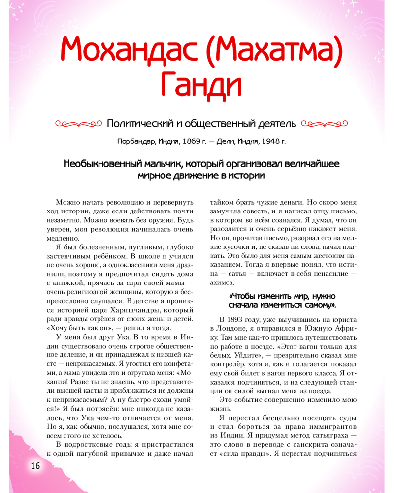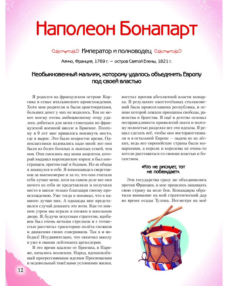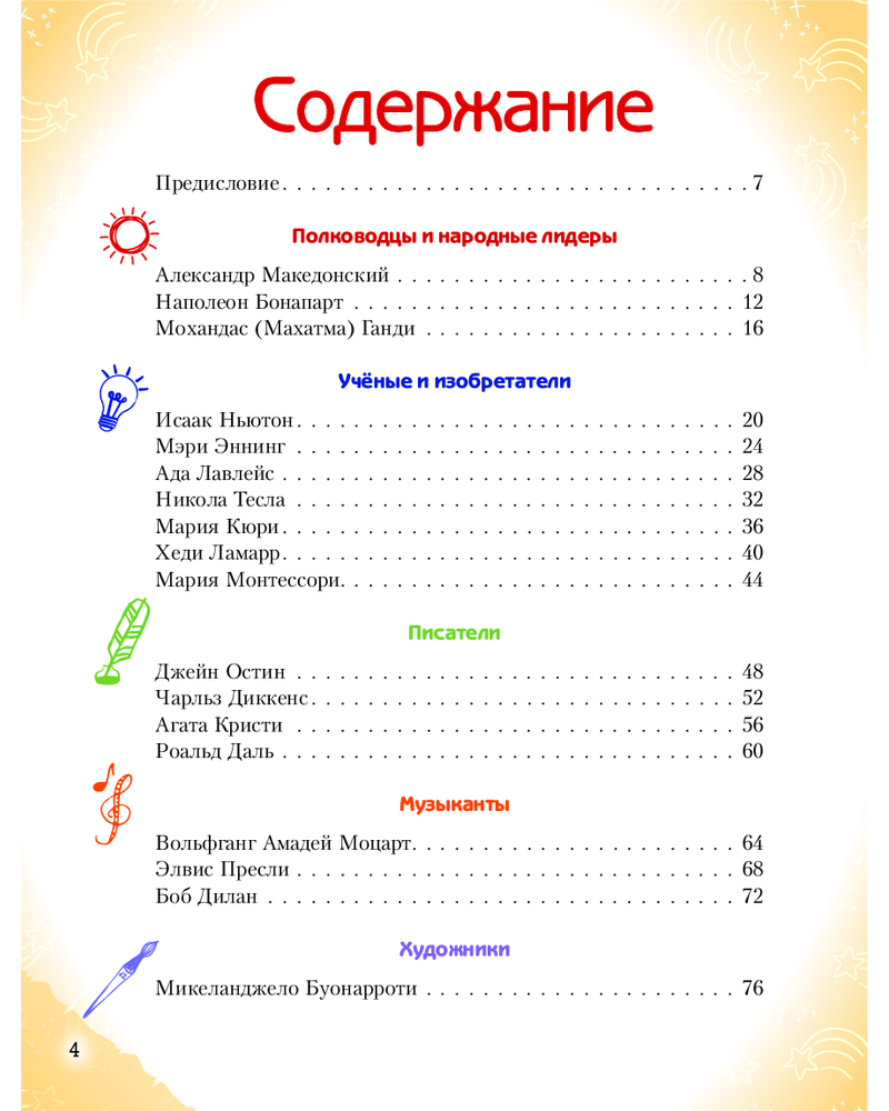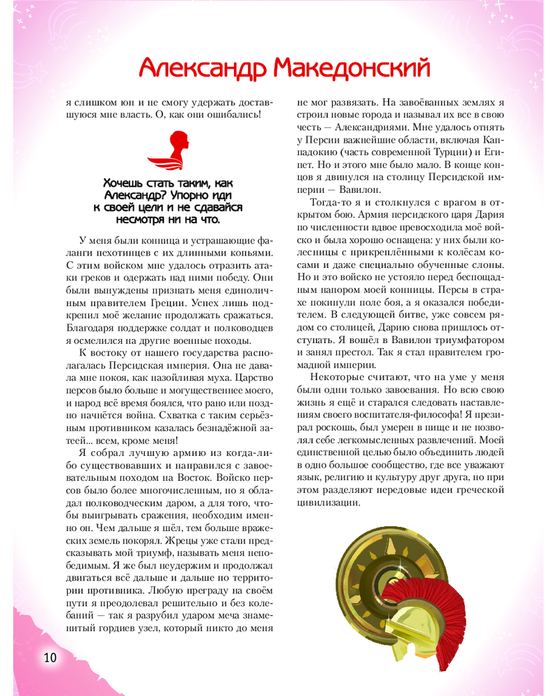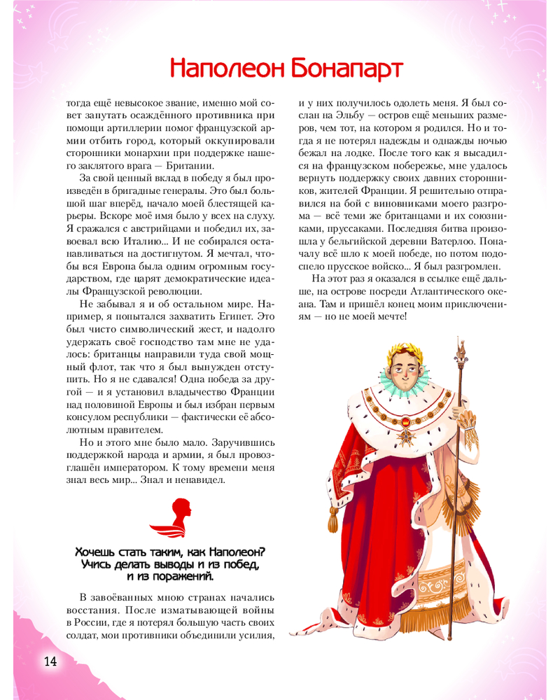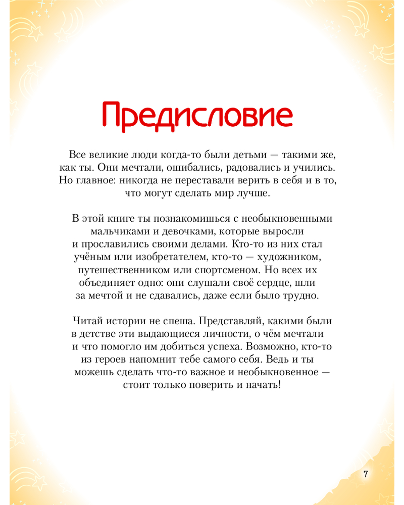 💳 Оплатить за товар можно при получении 🇰🇿 Есть бесплатная доставка по Казахстану от 1 дня 🎁 Копите бонусы с каждой покупки Серия: Истории о великих людях, изменивших мир «Необыкновенные мальчики и девочки, изменившие мир» — вдохновляющая энциклопедия для детей 10–14 лет, в которой собраны мотивационные истории о 40 юных героях, выросших и ставших выдающимися учеными, исследователями, изобретателями, спортсменами и деятелями искусства. Какой атлет завоевал сразу четыре золотые медали на Олимпийских играх 1936 года? Какая исследовательница стала обладательницей сразу двух Нобелевских премий? Кто получил за свои заслуги в области мультипликации целых 26 статуэток «Оскар»? Кто из кинодив способствовал появлению Wi-Fi? В этой книге собраны самые интересные факты о детстве и пути ребят, чьи открытия, идеи и смелые мечты навсегда изменили мир. Книга станет настоящей энциклопедией вдохновения для мальчиков и девочек, мечтающих о собственных достижениях. |