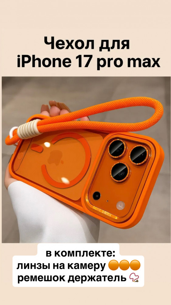 💳 Оплатить за товар можно при получении 🇰🇿 Есть бесплатная доставка по Казахстану от 1 дня 🎁 Копите бонусы с каждой покупки Чехол с кронштейном для камеры на iPhone 17 Pro Max. Ремешок на запястье, удобный держатель. Защитные линзы в подарок |