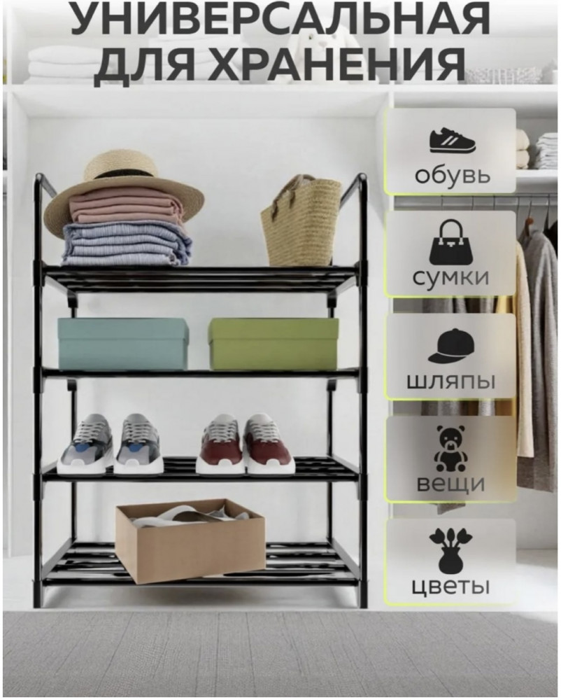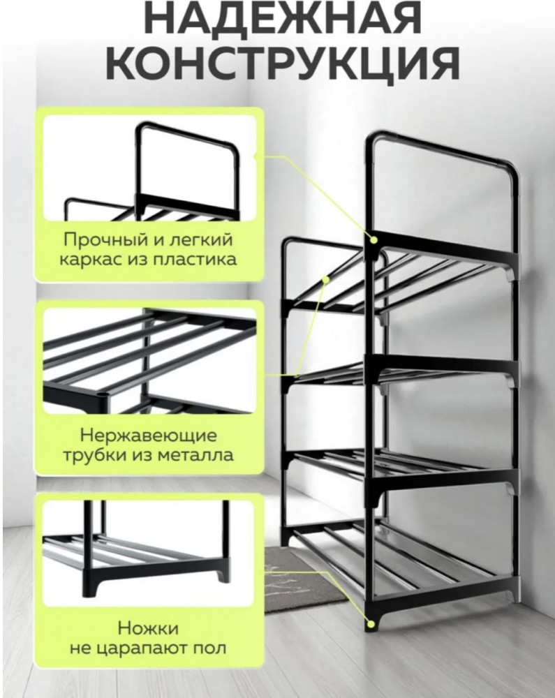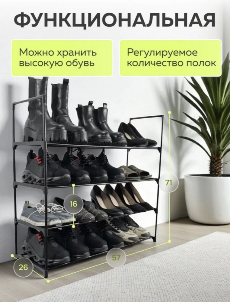 • до 12 пар обуви: вмещает кроссовки, туфли и ботинки;