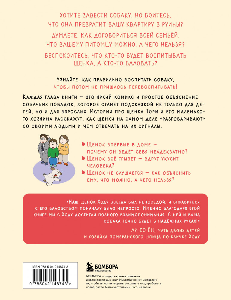 💳 Оплатить за товар можно при получении 🇰🇿 Есть бесплатная доставка по Казахстану от 1 дня 🎁 Копите бонусы с каждой покупки Серия: Домашние питомцы. Уход, здоровье, воспитание Хотите, чтобы ваш щенок вырос послушным, здоровым и счастливым питомцем? Эта книга станет вашим верным помощником с первых дней жизни питомца в вашем доме! Книга предназначена для семейного чтения и основана на практических советах, которые помогут избежать ошибок и воспитать щенка правильно сразу — без мучений и стресса. Яркие комиксы легко читаются, вызывают улыбку и дают всей семье повод собраться вместе за полезным делом или увлекательной игрой с четвероногим другом. |