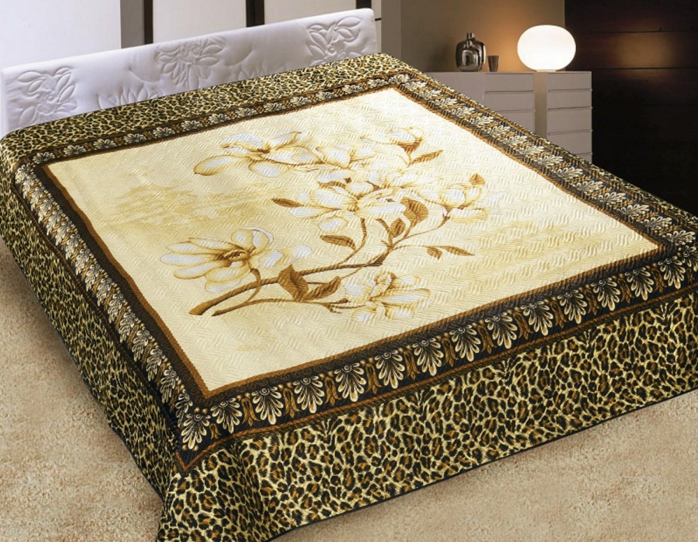 Стеганое покрывало из искусственного шелка «Жасмин» с законченным великолепным рисунком от дизайнеров торговой марки «Марианна», очень мягкое и гладкое, с частой стежкой фигурным узором, украсит вашу спальню и придаст очарование вашей постели.