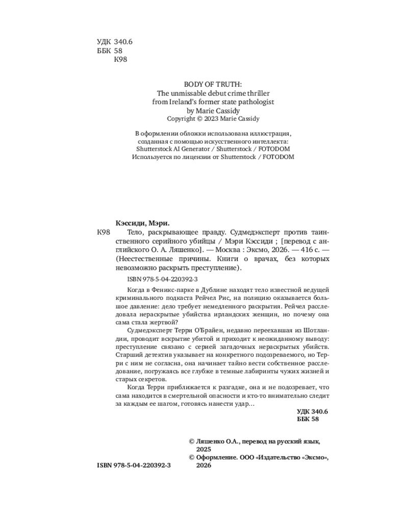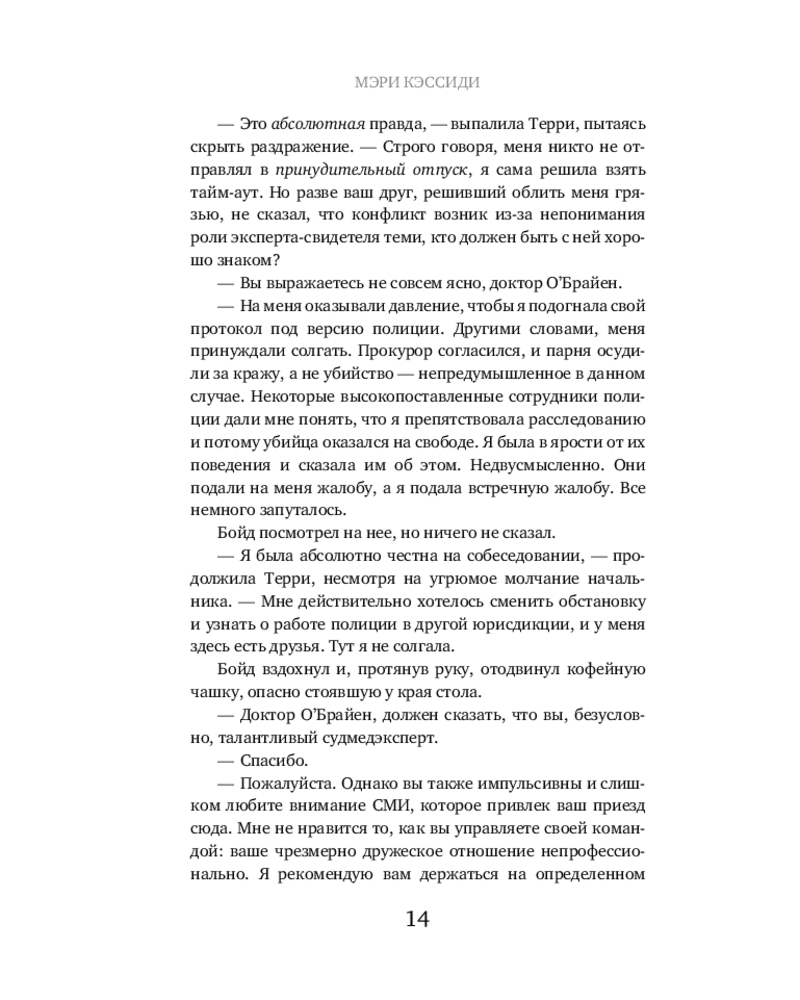 💳 Оплатить за товар можно при получении 🇰🇿 Есть бесплатная доставка по Казахстану от 1 дня 🎁 Копите бонусы с каждой покупки Серия: Неестественные причины. Книги о врачах, без которых невозможно раскрыть преступление Перед вами захватывающий судебный триллер от Мэри Кэссиди — бывшего судмедэксперта с 30-летним опытом, имевшей дело с сотнями убийств, и автора бестселлера «Место преступления — тело». |