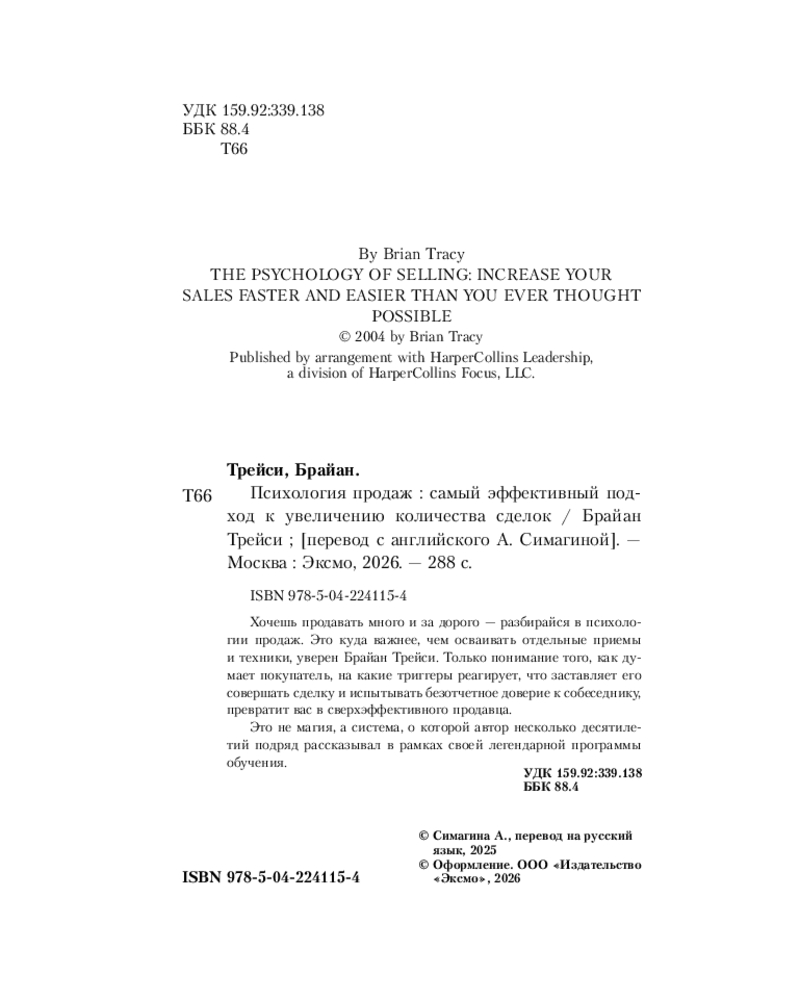 💳 Оплатить за товар можно при получении 🇰🇿 Есть бесплатная доставка по Казахстану от 1 дня 🎁 Копите бонусы с каждой покупки Серия: Учиться у лучших. Брайан Трейси Хочешь продавать много и задорого — разбирайся в психологии продаж. Это куда важнее, чем осваивать отдельные приемы и техники, уверен Брайан Трейси. Только понимание того, как думает покупатель, на какие триггеры реагирует, что заставляет его совершать сделку и испытывать безотчетное доверие к собеседнику, превратит вас в сверхэффективного продавца. Это не магия, а система, о которой автор несколько десятилетий подряд рассказывал в рамках своей легендарной программы обучения. |