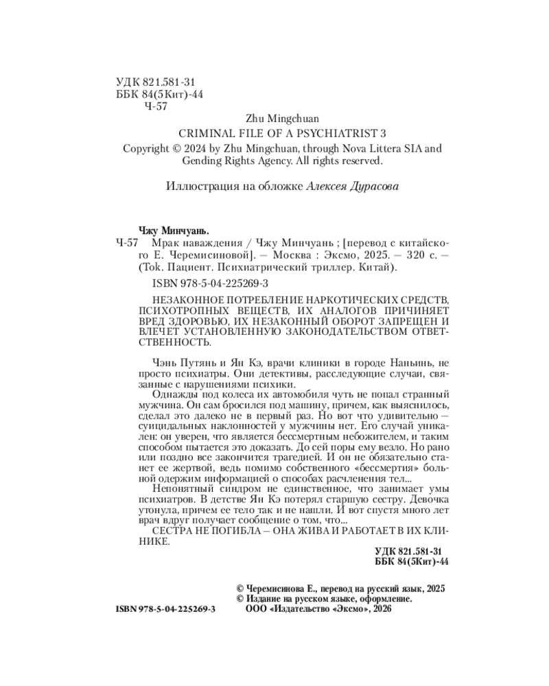 💳 Оплатить за товар можно при получении 🇰🇿 Есть бесплатная доставка по Казахстану от 1 дня 🎁 Копите бонусы с каждой покупки Серия: Tok. Пациент. Психиатрический триллер. Китай (обложка с клапанами) Чэнь Путянь и Ян Кэ, врачи клиники в городе Наньинь, — не просто психиатры. Они — детективы, расследующие случаи, связанные с нарушениями психики. |