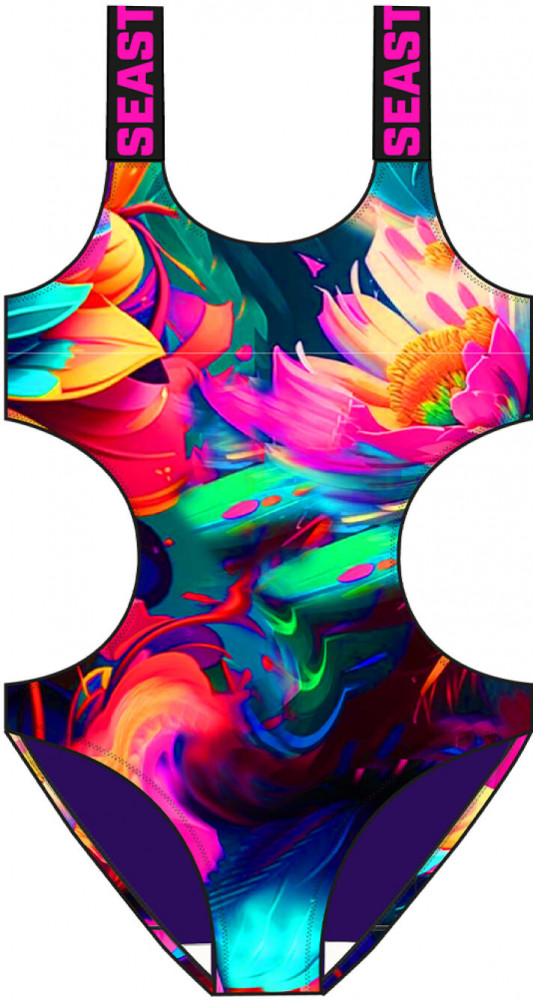 Купальник слитный для девочки подростка. Яркий купальник с оригинальным дизайном — открытые бока и глубокий вырез на спине придают изделию современный и спортивный вид. Модель выполнена из эластичной ткани с насыщенным многоцветным принтом в стиле абстрактных цветов. Бретели украшены жаккардовой тесьмой с надписями. Купальник дополнен мягкой подкладкой. Со 146 размера предусмотрены мягкие съемные чашки. По краям используется эластичная тесьма для комфортной посадки. Благодаря UF-защите, ткань сохраняет первоначальный вид даже при длительном пребывании на солнце. Идеально подойдет для пляжа и бассейна.