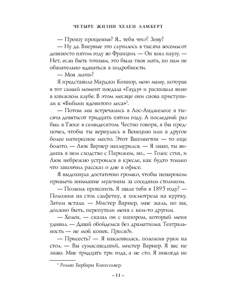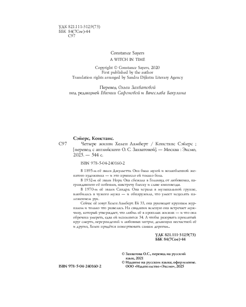 💳 Оплатить за товар можно при получении 🇰🇿 Есть бесплатная доставка по Казахстану от 1 дня 🎁 Копите бонусы с каждой покупки Серия: Universum. Чаромантика В 1895-м её звали Джульетта. В 16 лет она стала музой и возлюбленной женатого художника — и это принесло ей только боль. В 1932-м её звали Нора. Она сбежала в Голливуд от любовника, награждавшего её побоями, навстречу блеску и славе кинозвезды. В 1970-м её звали Сандра. Она играла в музыкальной группе, влюбилась в чужого мужа — и обнаружила, что умеет исцелять наложением рук. |