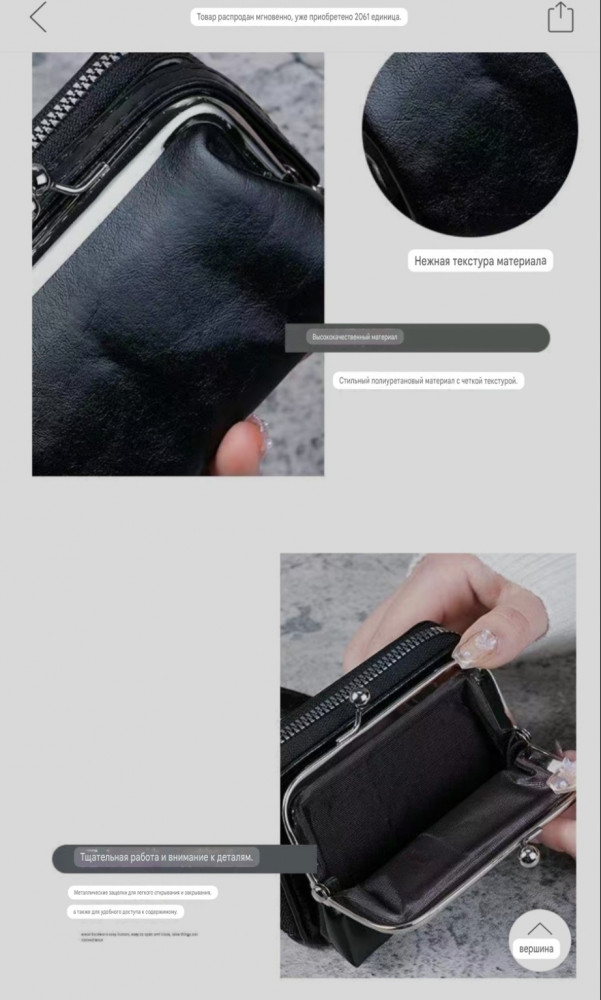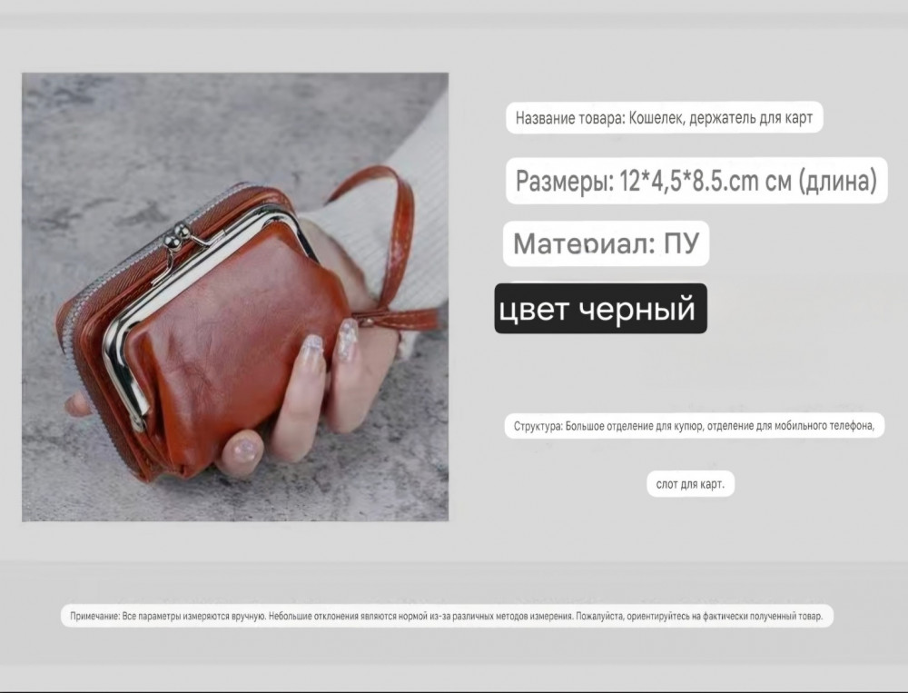 • вместительный — отделения для карт, купюр и мелочи;