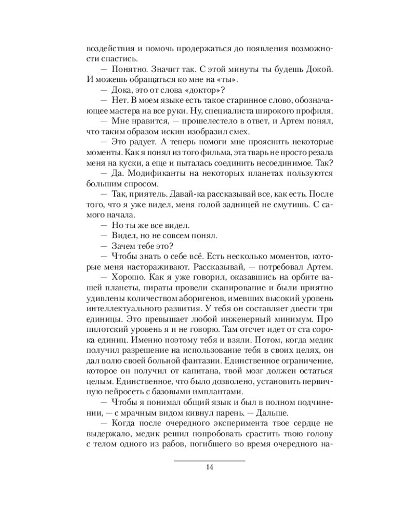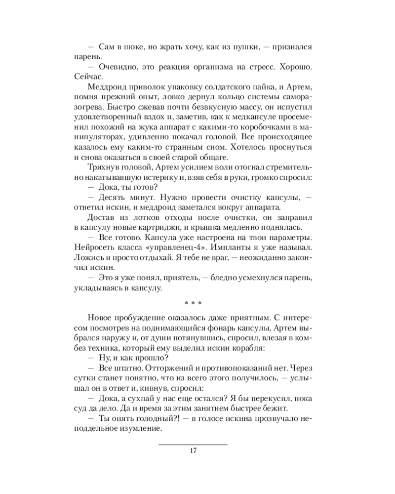 💳 Оплатить за товар можно при получении 🇰🇿 Есть бесплатная доставка по Казахстану от 1 дня 🎁 Копите бонусы с каждой покупки Серия: Коллекция. Военная фантастика Он оказался лишним. Ненужным. Инвалид — в прошлой жизни, и ничего не знающий о нынешней. Человек, единственным другом которого стал новый, экспериментальный искин, получивший матрицу развития личности. В итоге — живой, имеющий руки, и неживой, обладающий знаниями... На просторах галактики всё ещё идёт война! |