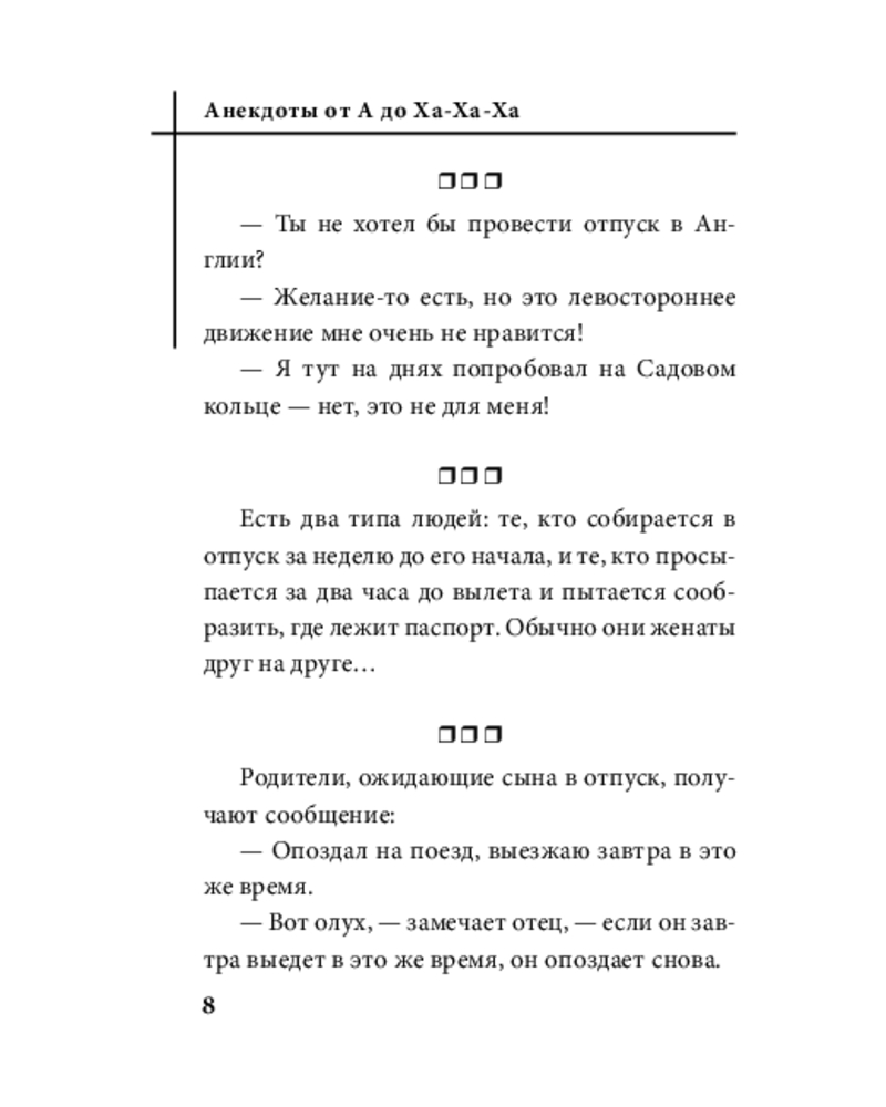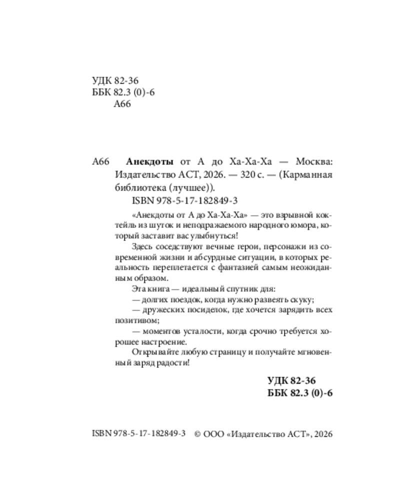 💳 Оплатить за товар можно при получении 🇰🇿 Есть бесплатная доставка по Казахстану от 1 дня 🎁 Копите бонусы с каждой покупки Серия: Карманная библиотека. Лучшее «Анекдоты от А до Ха‑Ха‑Ха» — это взрывной коктейль из шуток и неподражаемого народного юмора, который заставит вас улыбнуться! Здесь соседствуют вечные герои, персонажи из современной жизни и абсурдные ситуации, в которых реальность переплетается с фантазией самым неожиданным образом. |