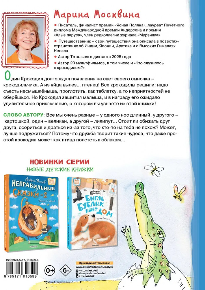 💳 Оплатить за товар можно при получении 🇰🇿 Есть бесплатная доставка по Казахстану от 1 дня 🎁 Копите бонусы с каждой покупки Серия: Новые детские книжки Сказка «Что случилось с крокодилом» — смешная и очаровательная история, а также поучительный урок для детей и взрослых: нужно принимать близких такими, какие они есть, и всегда защищать их от других «крокодилов». Важную часть в книге занимают иллюстрации Леонида Тишкова — из картинок художника читатели узнают больше об удивительной жизни крокодила и птенца. Для детей до 3-х лет. |