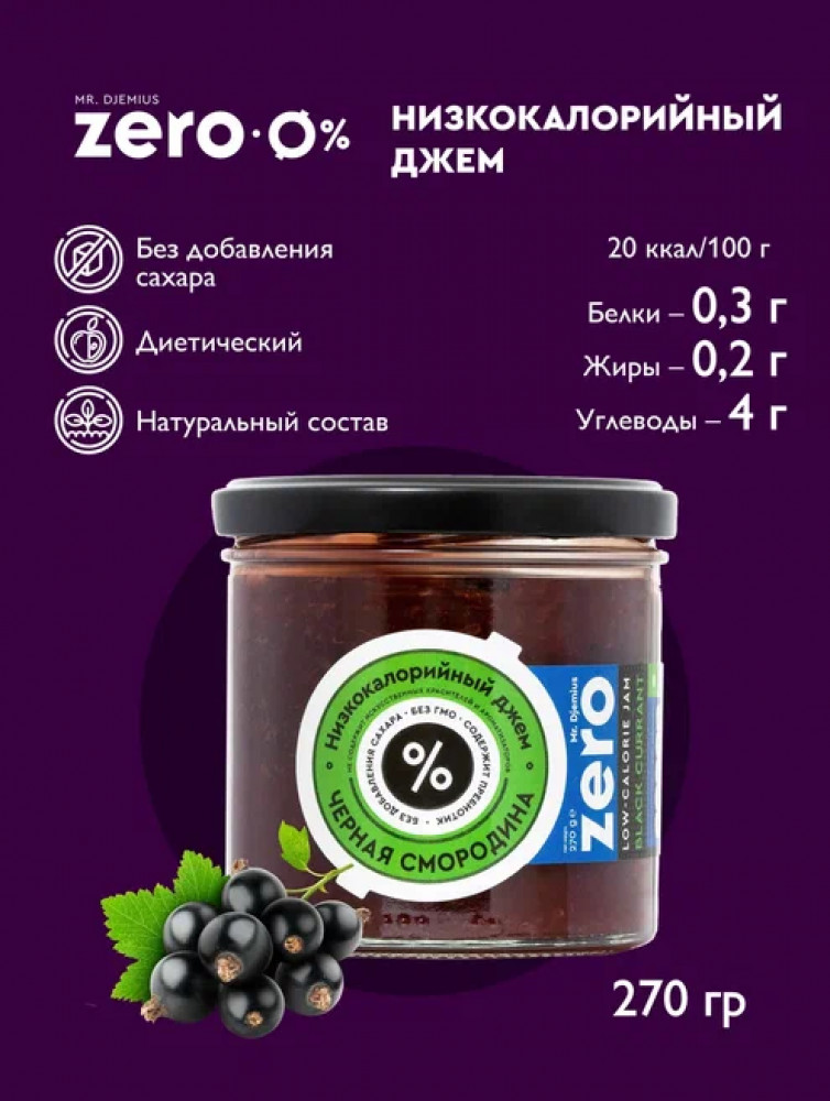 Черносмородиновый джем от Mr. Djemius ZERO не жидкий и не слишком густой, достаточно плотный для того, чтобы удобно намазывать его на хлебцы или тосты. Он отлично подойдет в качестве топпинга для творога, йогурта, каши, ПП панкейков и блинов или как начинка для торта, кексов или пирога.