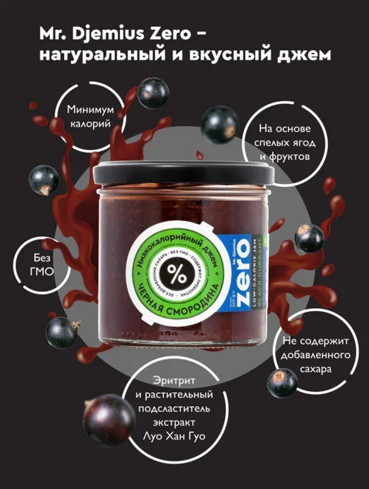 Джем «Черная смородина» — это низкоуглеводный диетический десерт из натуральных ягод. По вкусу вы не отличите наш низкокалорийный джем без сахара от обычного черносмородинового варенья.